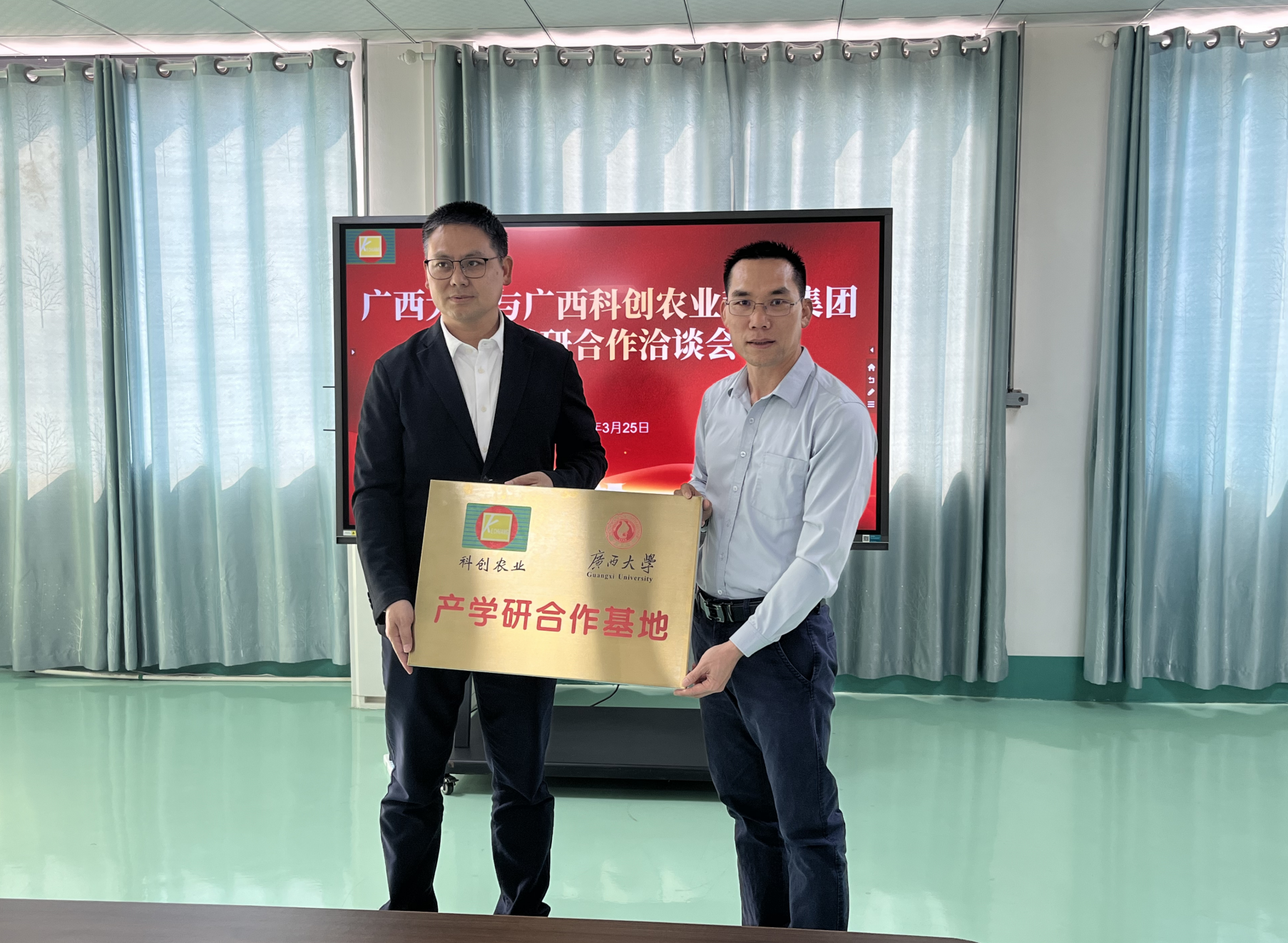 最后,賀德強(qiáng)院長代表西大和張勝忠董事長簽署“廣西大學(xué)-廣西科創(chuàng)農(nóng)業(yè)科技集團(tuán)產(chǎn)學(xué)研合作基地”共建協(xié)議,并現(xiàn)場舉行揭牌儀式。