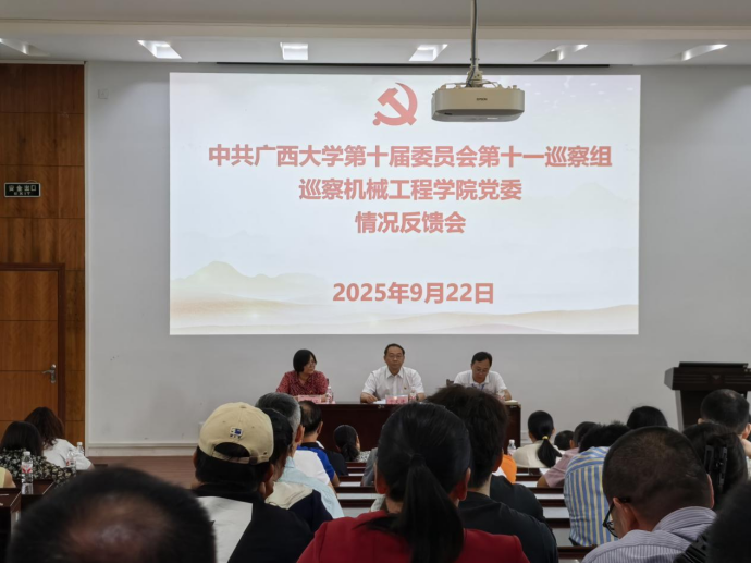 9月22日,中共廣西大學(xué)委員會第十一巡察組巡察我院黨委情況反饋會在學(xué)院第二階梯教室舉行。學(xué)校黨委常委、副校長于文進出席會議并講話。會議由學(xué)院黨委書記盧嬋江主持。