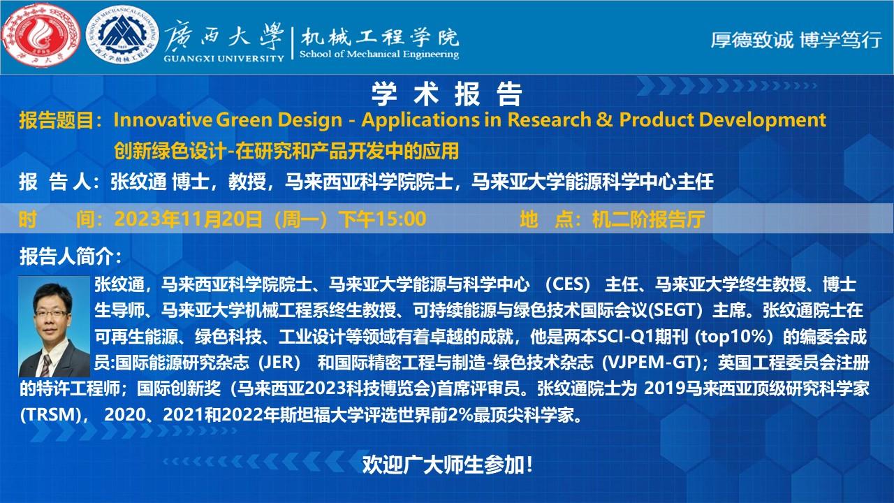【機(jī)械工程學(xué)院學(xué)術(shù)報(bào)告】創(chuàng)新綠色設(shè)計(jì)-在研究和產(chǎn)品開發(fā)中的應(yīng)用