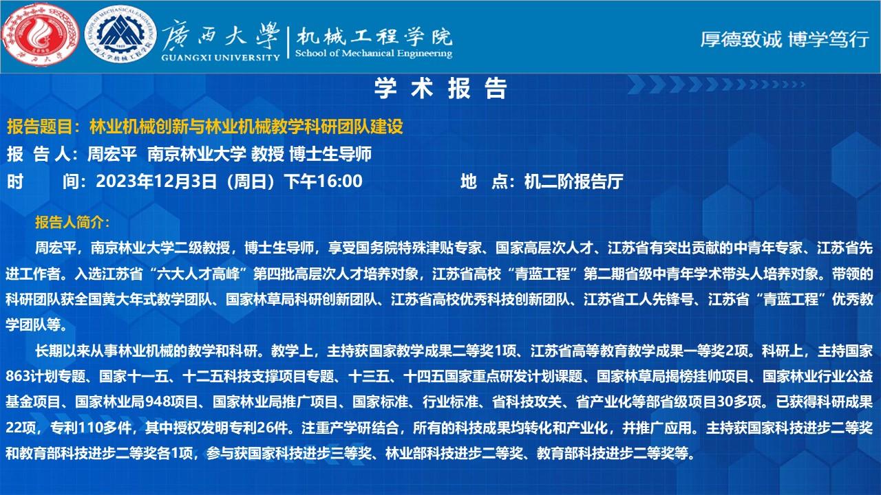 【機械工程學(xué)院學(xué)術(shù)報告】林業(yè)機械創(chuàng)新與林業(yè)機械教學(xué)科研團隊建設(shè)