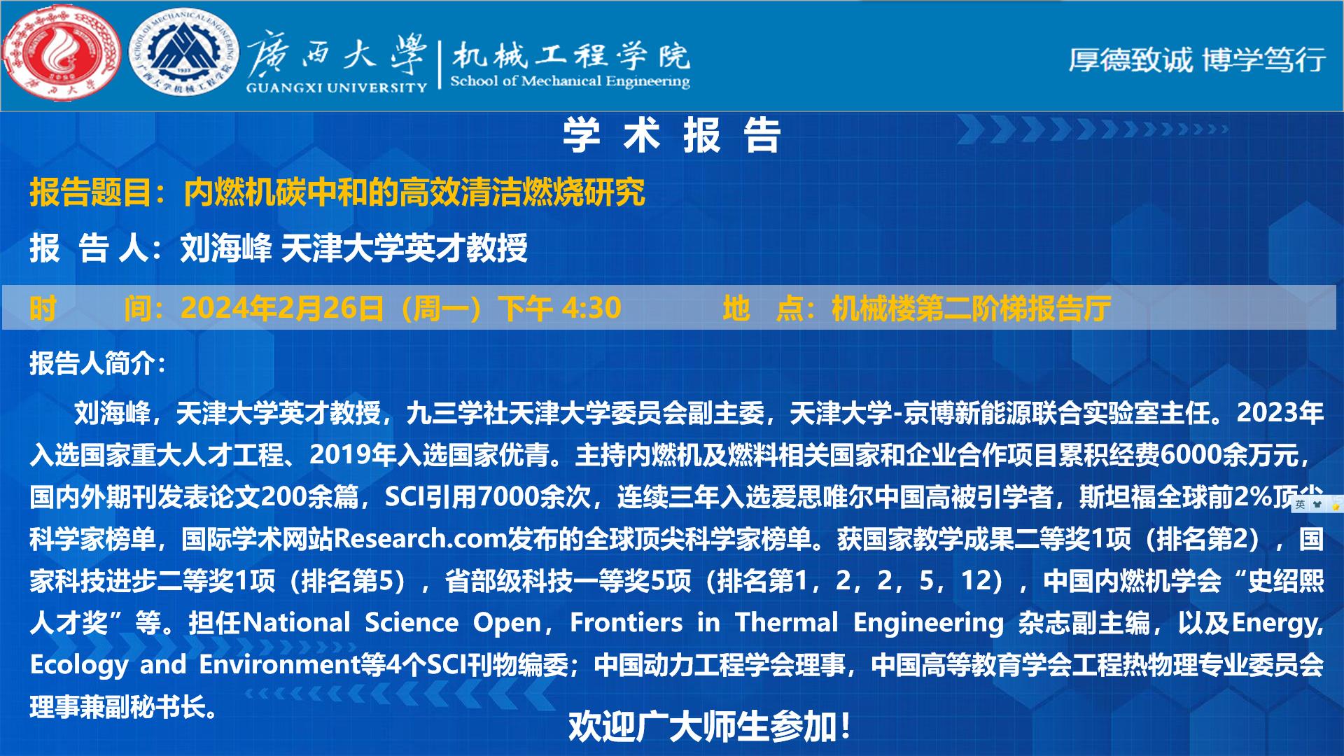 【機(jī)械工程學(xué)院學(xué)術(shù)報(bào)告】內(nèi)燃機(jī)碳中和的高效清潔燃燒研究