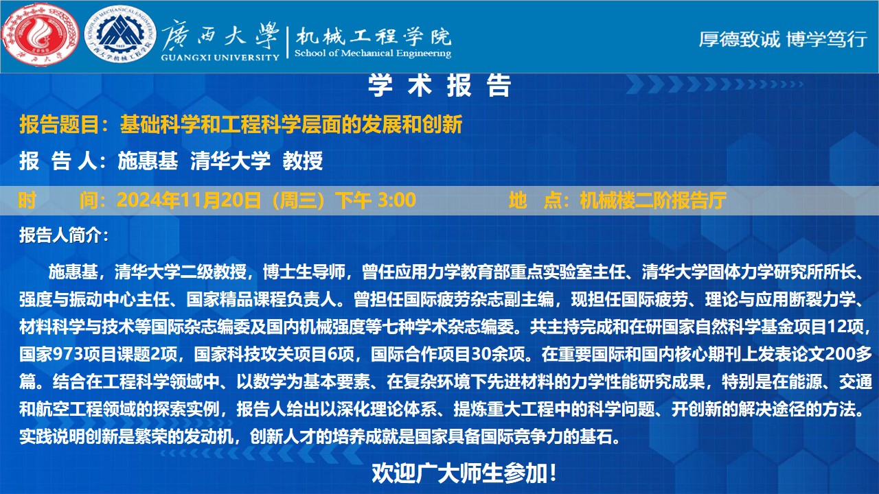 【機械工程學院學術報告】基礎科學和工程科學層面的發(fā)展和創(chuàng)新