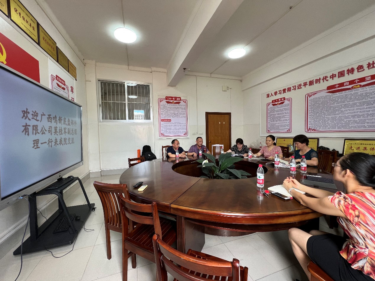 2022年7月8日上午,桂林鳴新底盤(pán)有限公司莫桂軍副總經(jīng)理以及綜合管理部馬超群部長(zhǎng)一行,到我院進(jìn)行產(chǎn)學(xué)研交流。學(xué)院常務(wù)副院長(zhǎng)蒙艷玫、黨委副書(shū)記黃路明、副院長(zhǎng)李俚,以及車(chē)輛工程系主任覃頻頻等相關(guān)老師參加了座談會(huì)。