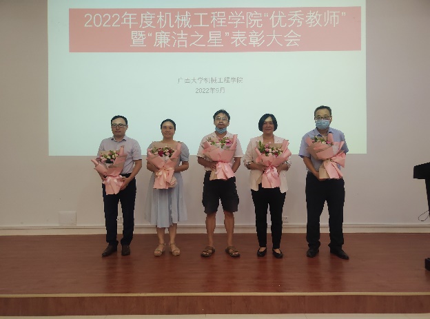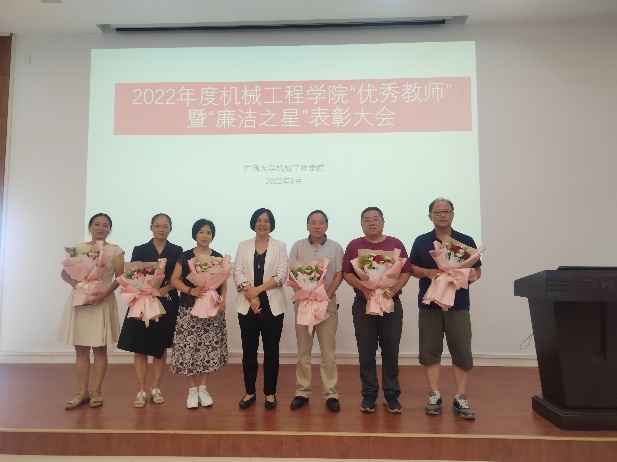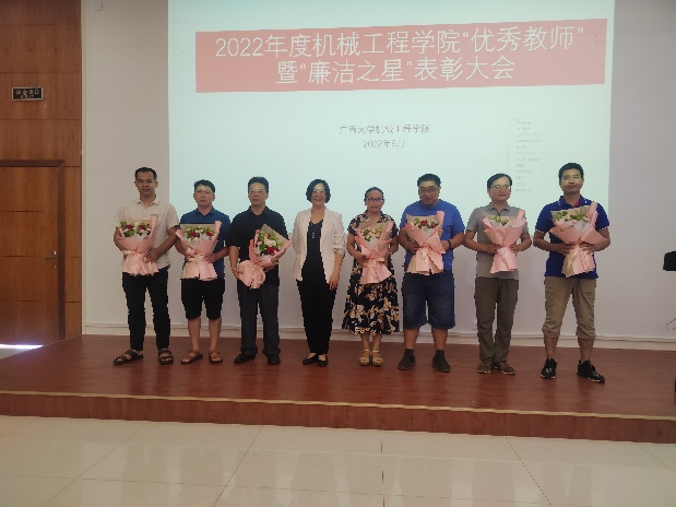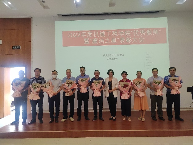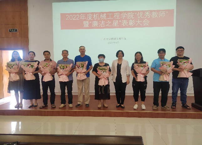 會上,院黨委書記盧嬋江宣讀了《關(guān)于表彰2022年度機(jī)械工程學(xué)院“優(yōu)秀教師”、“廉潔之星”、“廉潔家訓(xùn)”的決定》。《決定》授予蒲明輝等49位同志2022年度機(jī)械工程學(xué)院“優(yōu)秀教師”榮譽(yù)稱號。學(xué)院領(lǐng)導(dǎo)為獲獎的教職工頒發(fā)榮譽(yù)證書和鮮花,大會最后由盧嬋江書記作總結(jié)發(fā)言。盧書記首先代表學(xué)院黨委對獲獎的全體教職員工表示了熱烈祝賀,同時對全院上半年的工作表現(xiàn)和所取得的成績給予了充分肯定,對學(xué)院下半年迎接教育部審核預(yù)評估、教育部工程教育認(rèn)證中期考核以及教育廳的專業(yè)認(rèn)證等重要工作進(jìn)行了全面動員和工作部署。盧書記表示,機(jī)械工程學(xué)科近幾年在各級領(lǐng)導(dǎo)的關(guān)懷和支持下,在人才引進(jìn)、硬件改善、資金投入、辦學(xué)場地等方面得到了較大的改善,為機(jī)械工程學(xué)科的發(fā)展創(chuàng)造了更好的條件,為機(jī)械工程學(xué)院的辦學(xué)創(chuàng)造了更多的機(jī)遇。全體教職員工應(yīng)凝心聚力,聚焦人才培養(yǎng)和科學(xué)研究,努力抓住學(xué)科發(fā)展歷史新機(jī)遇,不忘初心、牢記使命,迎難而上,爭創(chuàng)佳績,努力讓我院各項工作更上新臺階,爭取以優(yōu)異的成績迎接黨的二十大勝利召開!