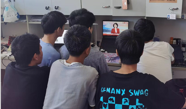 部分學(xué)生在宿舍自發(fā)觀看直播 |