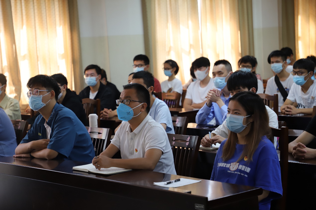 學(xué)院領(lǐng)導(dǎo)班子成員和師生黨員代表在機二階觀看直播