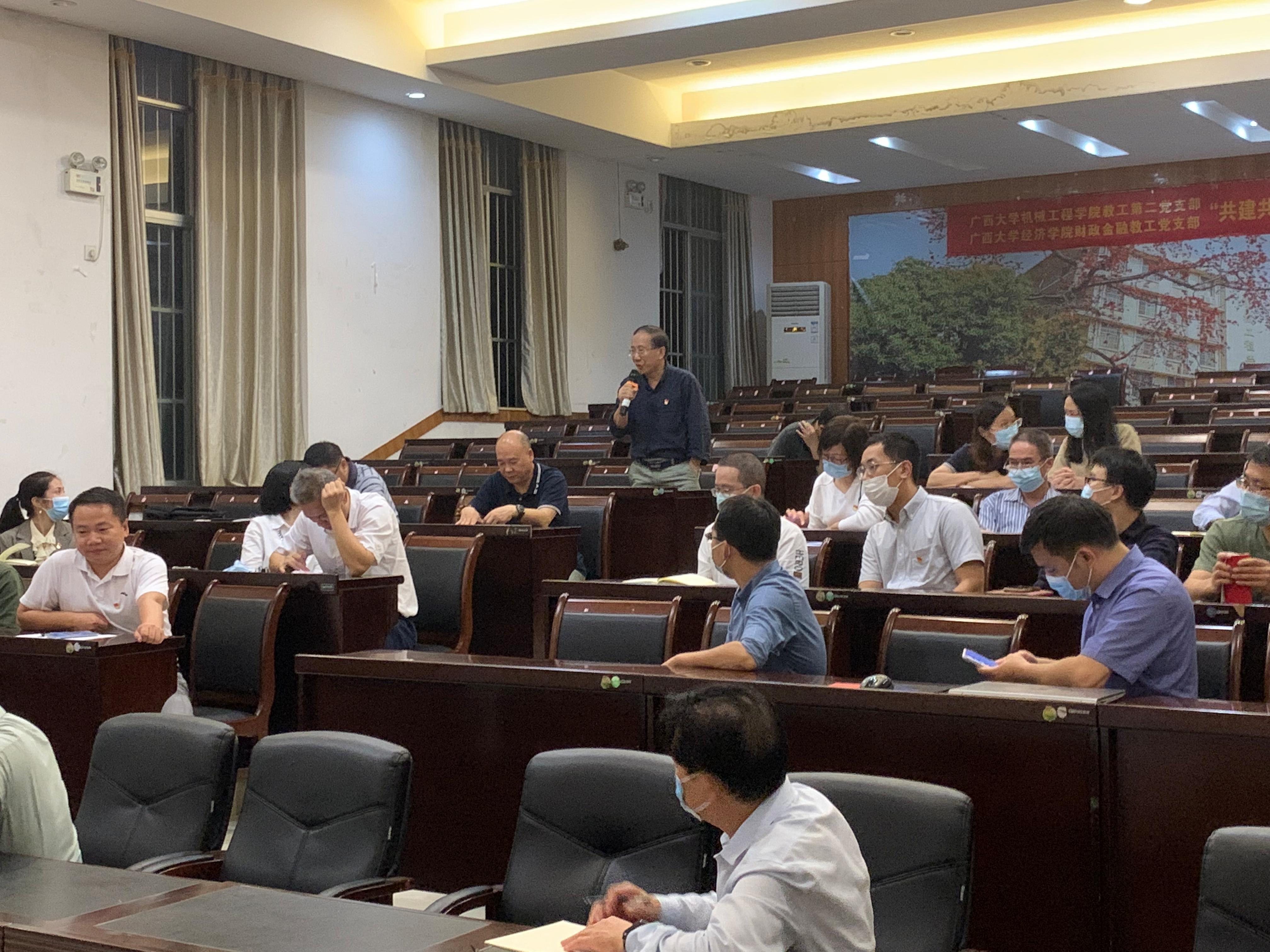 深入學習貫徹黨的二十大精神,努力推進黨的二十大精神“三進”是當前和今后一個時期的首要政治任務。機械工程學院與經(jīng)濟學院均處在深化教育教學改革、爭創(chuàng)學科一流的重要發(fā)展階段。兩個學院以學習黨的二十大精神為契機,創(chuàng)新開展支部共建互促活動,努力通過融合學科交叉的力量,促進學科間的優(yōu)勢互補,共同挖掘課程思政元素,研討開發(fā)潤物無聲的教學方法,努力提升廣西發(fā)展急需的機械工程、經(jīng)濟管理方面的人才培養(yǎng)質量,推動“復興中華 發(fā)達廣西”總體目標的實現(xiàn)。