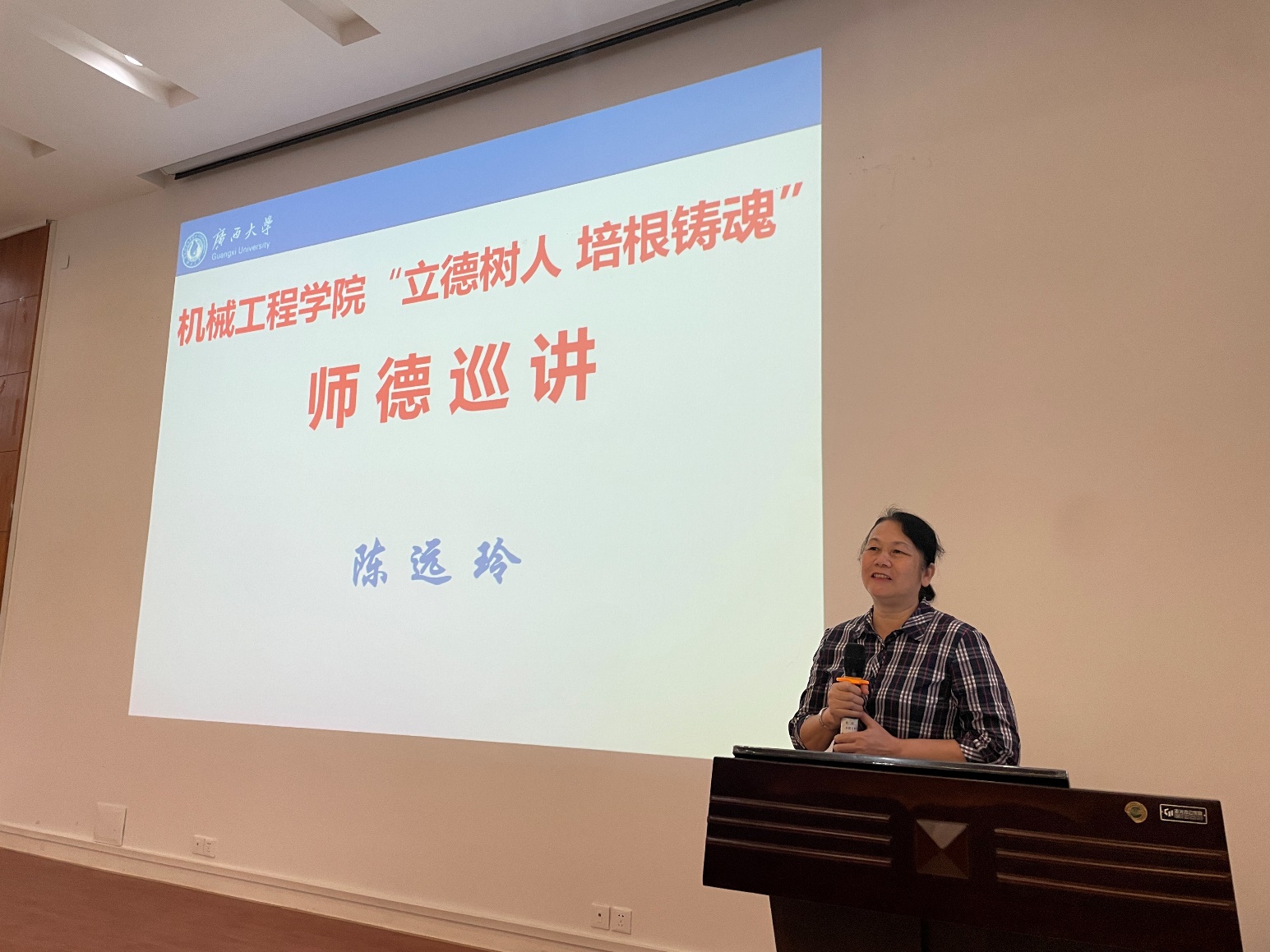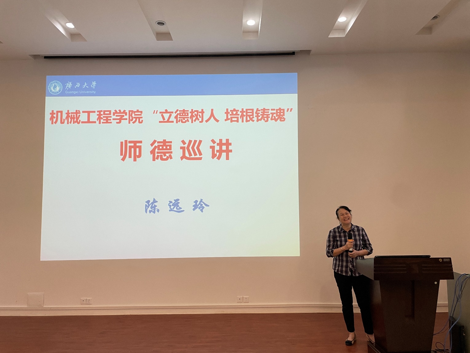 陳遠玲教授以生動的案例詮釋師德內(nèi)涵,講述她作為教師敬業(yè)樂業(yè),干一行、愛一行、鉆一行的從教心得。陳教授熱愛黨的教育事業(yè),努力以高尚的師德風范、深厚的學識積累和純良的人格魅力來教育和感染學生,以廣博知識潤化學生,用鼓勵和溫暖轉(zhuǎn)化學生。對待學生她從不抱任何偏見,真誠地關心學習上有困難的學生,她幾乎每年都指導留級學生的畢業(yè)設計并使他們達到畢業(yè)要求;她善于鼓勵和發(fā)揮學生的特長,樹立學生的專業(yè)自信心。她將愛國情懷、工匠精神、工程師職業(yè)道德規(guī)范融入課程教學,主持和參與了《機械工程概論》《機電液分析及測控實驗技術》廣西大學課程師政示范課建設,《機電液分析及測控實驗技術》獲批廣西一流本科課程,并被推薦參評國家級一流本科課程。身體力行,虛心學習,帶頭克服重重困難開展各項教學改革和專業(yè)建設工作。2017年機械設計制造及自動化專業(yè)率先成為廣西機械類第一個通過認證的專業(yè),2019年獲批國家級一流本科專業(yè)建設點,2020年第2次通過了專業(yè)認證,工程教育質(zhì)量進入國際先進行列,在區(qū)內(nèi)外同類高校中起到了很好的示范引領作用。