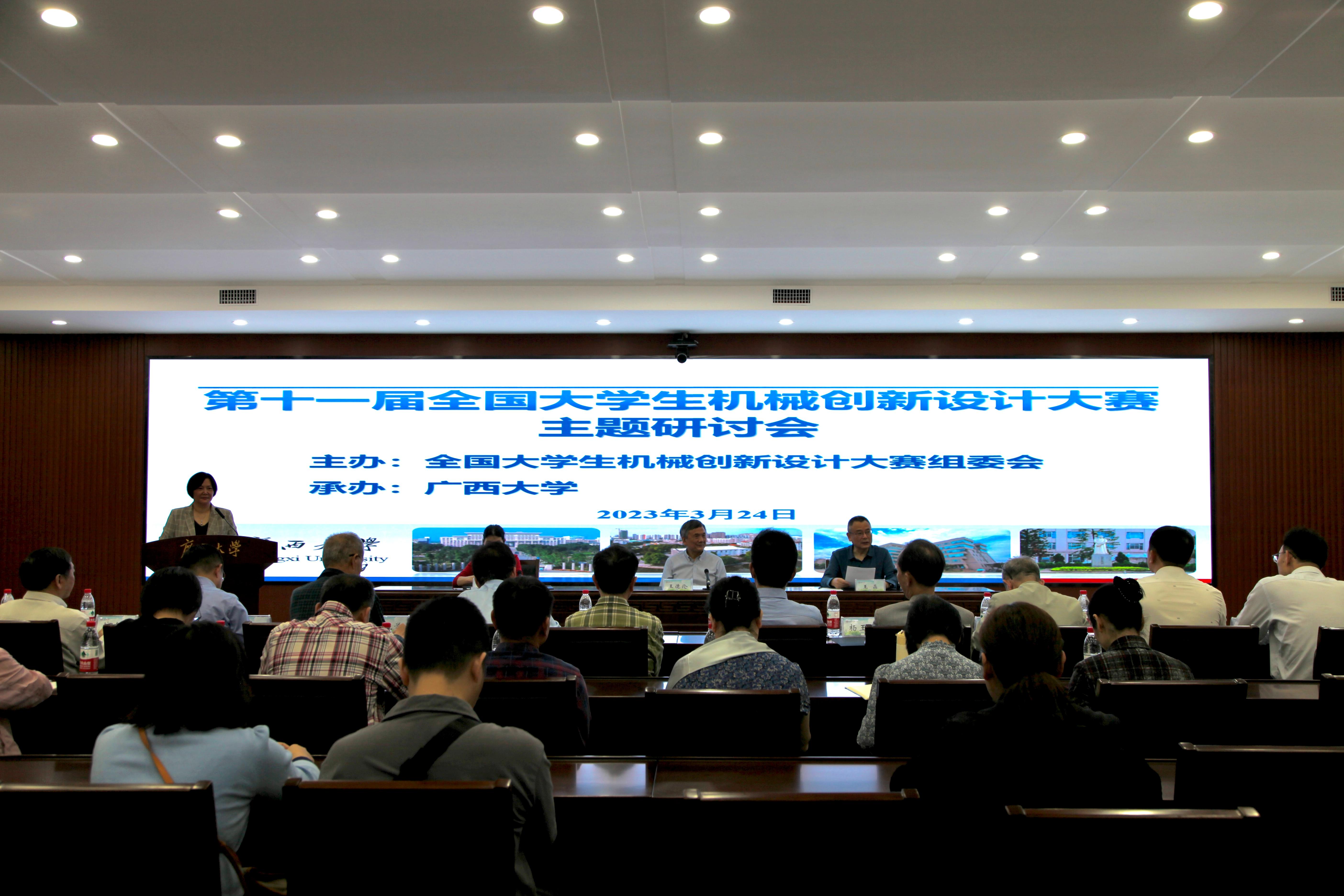 2023年3月24日,全國(guó)大學(xué)生機(jī)械創(chuàng)新設(shè)計(jì)大賽組委會(huì)在我校召開(kāi)第十一屆全國(guó)大學(xué)生機(jī)械創(chuàng)新設(shè)計(jì)大賽主題研討會(huì)。此次研討會(huì)由我遠(yuǎn)承辦。全國(guó)大學(xué)生機(jī)械創(chuàng)新設(shè)計(jì)大賽秘書(shū)長(zhǎng)王晶,教育部高等學(xué)校機(jī)械基礎(chǔ)課程教學(xué)指導(dǎo)分委員會(huì)、全國(guó)大學(xué)生機(jī)械創(chuàng)新設(shè)計(jì)大賽專家委員會(huì)、全國(guó)大學(xué)生機(jī)械創(chuàng)新設(shè)計(jì)大賽組委會(huì)等來(lái)自浙江大學(xué)、天津大學(xué)、同濟(jì)大學(xué)、西安交通大學(xué)、大連理工大學(xué)、華中科技大學(xué)、西安電子科技大學(xué)、西南交通大學(xué)、貴州大學(xué)、合肥工業(yè)大學(xué)、東南大學(xué)、長(zhǎng)春理工大學(xué)等高校的13名專家蒞臨。教務(wù)處處長(zhǎng)耿葵花、機(jī)械工程學(xué)院黨委書(shū)記盧嬋江、常務(wù)副院長(zhǎng)蒙艷玫等承辦單位代表參加會(huì)議。