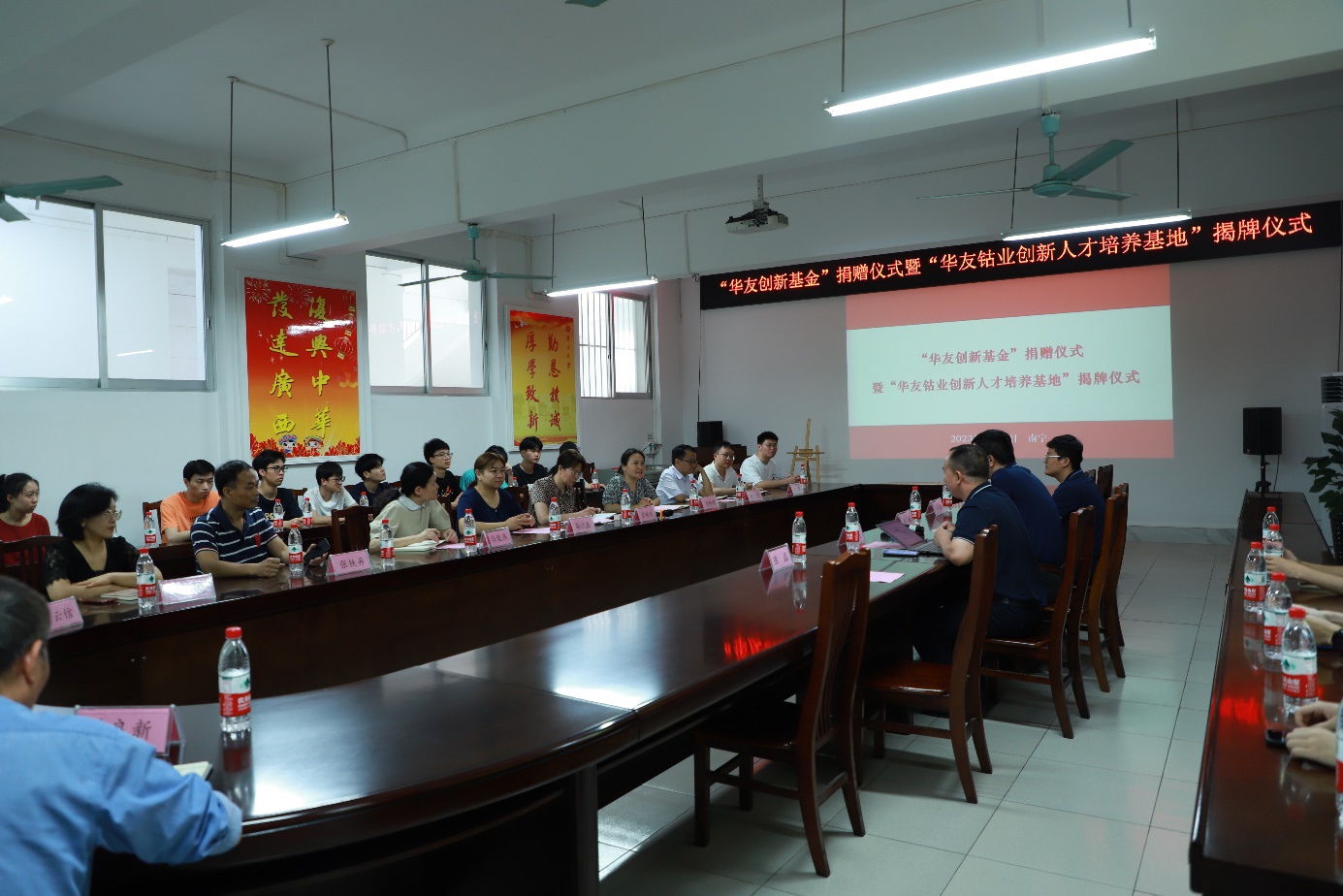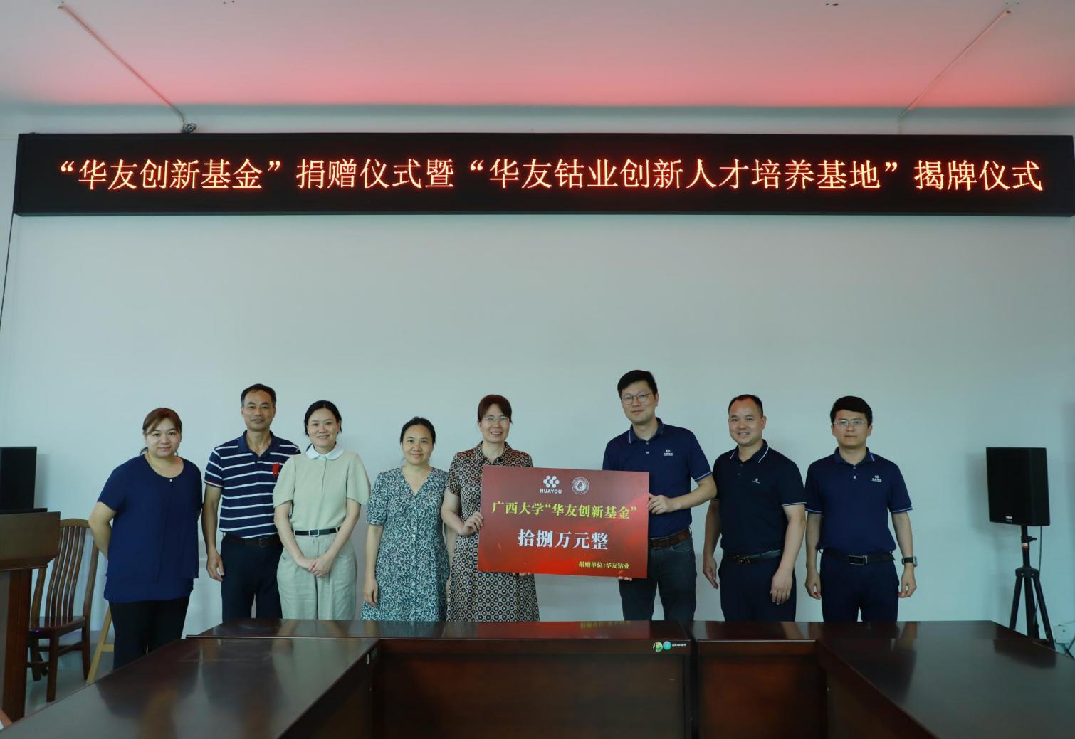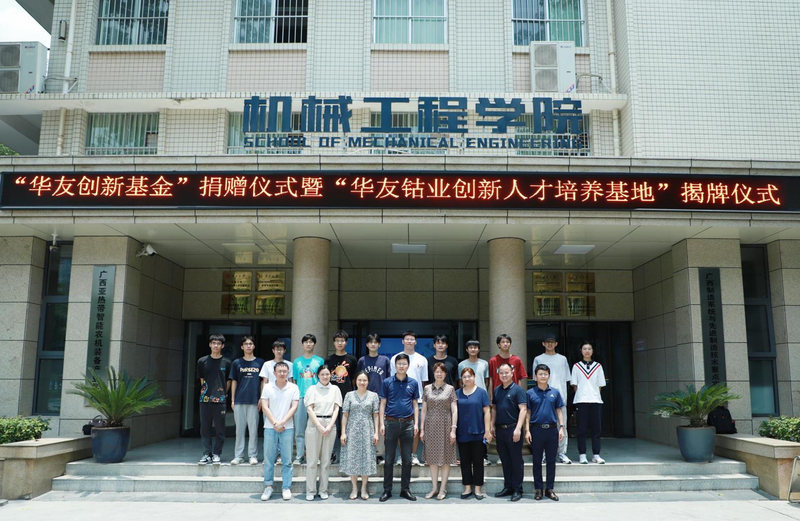 5月19日上午,浙江華友鈷業(yè)廣西華友工程項目管理有限公司人力資源中心總經(jīng)理王敏一行到訪我院,與我院領(lǐng)導(dǎo)和師生座談交流,并共同舉辦“華友創(chuàng)新基金”捐贈儀式暨“華友鈷業(yè)創(chuàng)新人才培養(yǎng)基地”揭牌儀式。儀式由黨委副書記黃路明主持,學(xué)院常務(wù)副院長蒙艷玫、副院長高欲垚、學(xué)科競賽指導(dǎo)老師馬俊燕、張鐵異以及學(xué)院全體輔導(dǎo)員出席儀式。