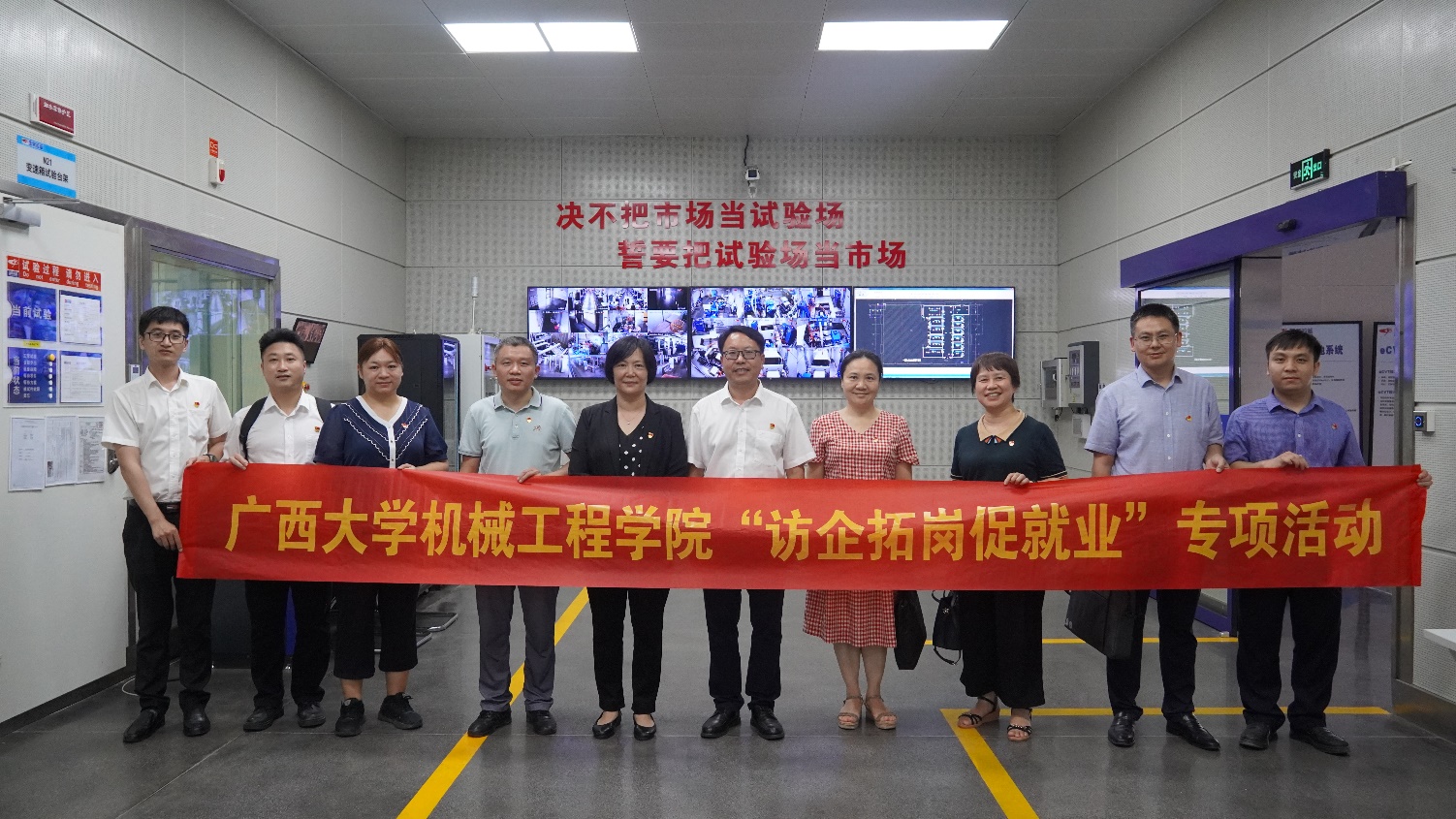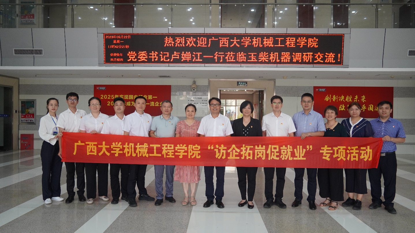 為深入貫徹黨中央、國務院關于高校畢業(yè)生就業(yè)工作的決策部署,推進訪企拓崗促就業(yè)專項行動,全力促進高校畢業(yè)生高質(zhì)量就業(yè),5月22日,學院黨委書記盧嬋江、黨委副書記黃路明、副院長賀德強、黃豪中、李俚、高欲垚,院長助理兼能源與動力工程系主任歐陽天成一行7人到玉柴機器研發(fā)總院走訪調(diào)研,開展“訪企拓崗促就業(yè)”專項活動。玉柴機器研發(fā)總院黨委書記兼常務副院長寇傳富,副院長兼新材料與摩擦潤滑中心主任覃星念、黨委副書記姜博、院長助理兼中重動力平臺部主任向本杰、院長助理兼電控與智能化中心主任葉宇、輕動力系統(tǒng)部主任王春玲、運營管理部副主任周益善等參加調(diào)研活動。雙方一同參觀了玉柴機器集團位于南寧高新區(qū)的研發(fā)基地,詳細了解企業(yè)的發(fā)展歷程、生產(chǎn)經(jīng)營現(xiàn)狀、人才結構及關鍵技術攻關需求等方面的情況。在走訪中,學院領導和老師積極向企業(yè)推薦我院畢業(yè)生,了解企業(yè)的人才需求,深度了解企業(yè)對畢業(yè)生的知識、能力、素質(zhì)要求,認真分析所在行業(yè)的發(fā)展趨勢和人才需求形勢,以作為不斷增強人才培養(yǎng)的針對性和適應性的重要參考。