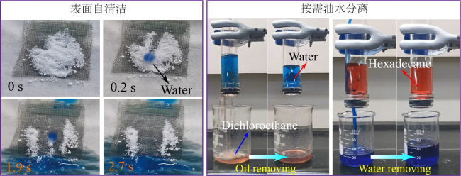圖2 超疏水表面的自清潔和油水分離應(yīng)用