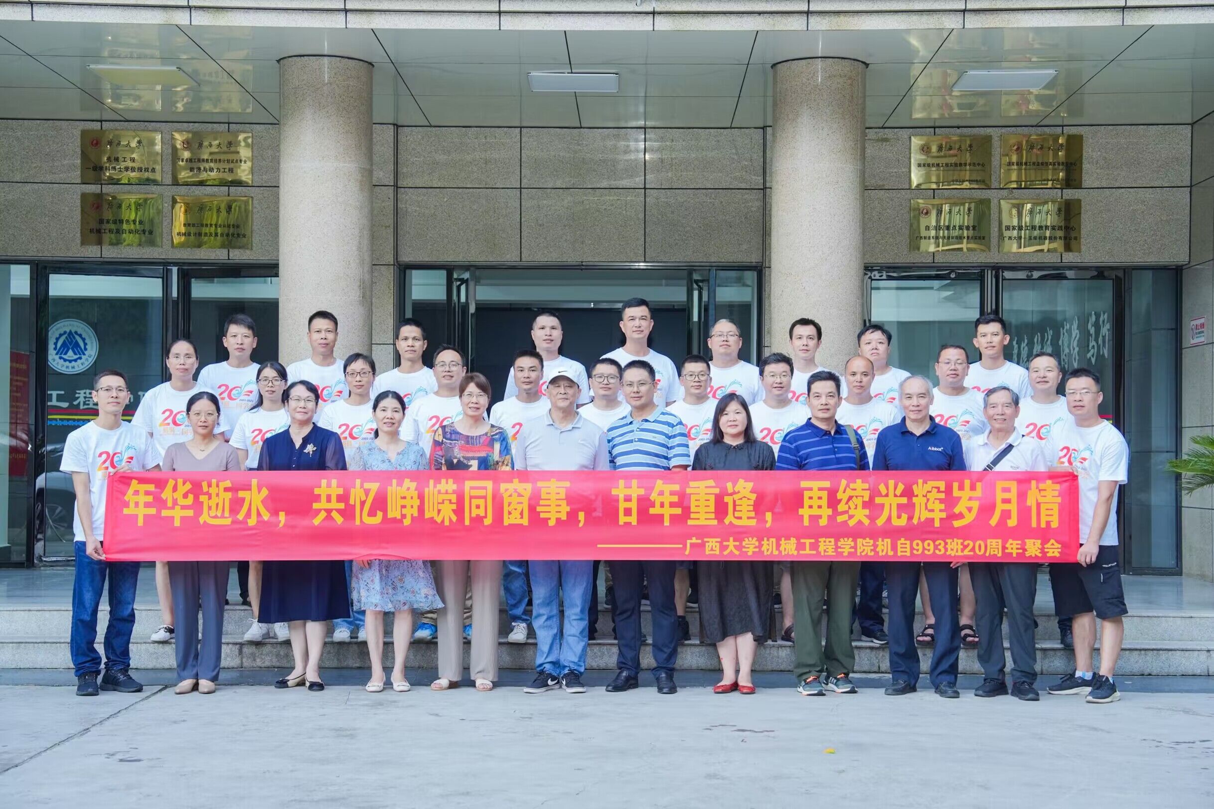 年華逝水,共憶崢嶸同窗事,甘年重逢,再續(xù)光輝歲月情。2023年8月12日,我院機(jī)自993班20余位校友返校舉行畢業(yè)20周年聚會。校教務(wù)處處長耿葵花,我院常務(wù)副院長蒙艷玫、副院長賀德強(qiáng)等10位老師作為教師代表參加活動。