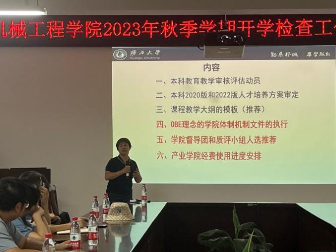 我院于2023年9月4日下午在學(xué)院第一會議室召開了系主任工作會議,對2023年秋季學(xué)期開學(xué)檢查內(nèi)容進(jìn)行工作布置。會議主要是圍繞即將開始的本科教學(xué)審核評估、本科2022版培養(yǎng)方案審定、教學(xué)大綱格式要求、OBE理念的學(xué)院體制機(jī)制文件等多個工作任務(wù)展開。學(xué)院副院長李俚,以及機(jī)械制造系主任、機(jī)械電子工程系、車輛工程系、能源與動力工程系、機(jī)械設(shè)計(jì)系、機(jī)械制圖系和實(shí)驗(yàn)中心等學(xué)院基層教學(xué)組織正副系主任出現(xiàn)會議。會議由分管教學(xué)的副院長李俚主持。