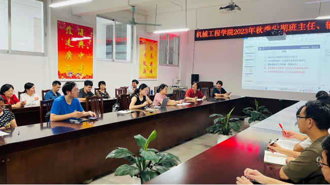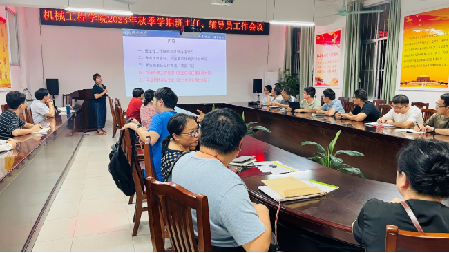 為加強班主任、輔導(dǎo)員隊伍建設(shè),提高本科教育教學(xué)質(zhì)量,促進學(xué)生全面發(fā)展,9月5日晚,學(xué)院召開了2023年秋季學(xué)期班主任、輔導(dǎo)員工作會議。學(xué)院黨委書記盧嬋江、黨委副書記黃路明、副院長李俚,以及全體班主任、輔導(dǎo)員老師等參加會議。