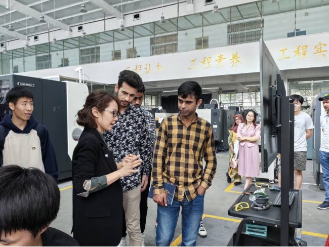 活動上,機械工程學(xué)院的專家們首先向各國留學(xué)生們分別介紹各自學(xué)科專業(yè)領(lǐng)域的研究現(xiàn)狀與科研成果。然后由我院大學(xué)生創(chuàng)新實驗室的學(xué)科競賽團隊學(xué)生現(xiàn)場介紹和展示其棉花種植機器人的科技創(chuàng)新作品。留學(xué)生們?nèi)瘫憩F(xiàn)出極高的興趣,向?qū)<曳e極提問,與學(xué)生積極互動。在交流的最后環(huán)節(jié),留學(xué)生們與我院的專家們深入探討我校國際留學(xué)生實踐能力的培養(yǎng)路徑、新能源在工業(yè)領(lǐng)域的開發(fā)利用、國際留學(xué)生如何申請學(xué)習(xí)機械工程專業(yè)等話題,專家們一一解答。座談結(jié)束后,留學(xué)生們一同參觀了廣西大學(xué)工程訓(xùn)練中心,從近距離的視角對機械工程學(xué)科領(lǐng)域的學(xué)習(xí)與研究有了更加直觀的了解。