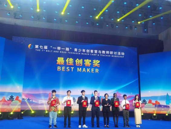11月10日,學(xué)院黨委書記盧嬋江出席第七屆“一帶一路”青少年創(chuàng)客營與教師研討活動閉幕式,現(xiàn)場為獲獎(jiǎng)的創(chuàng)客們頒獎(jiǎng)。