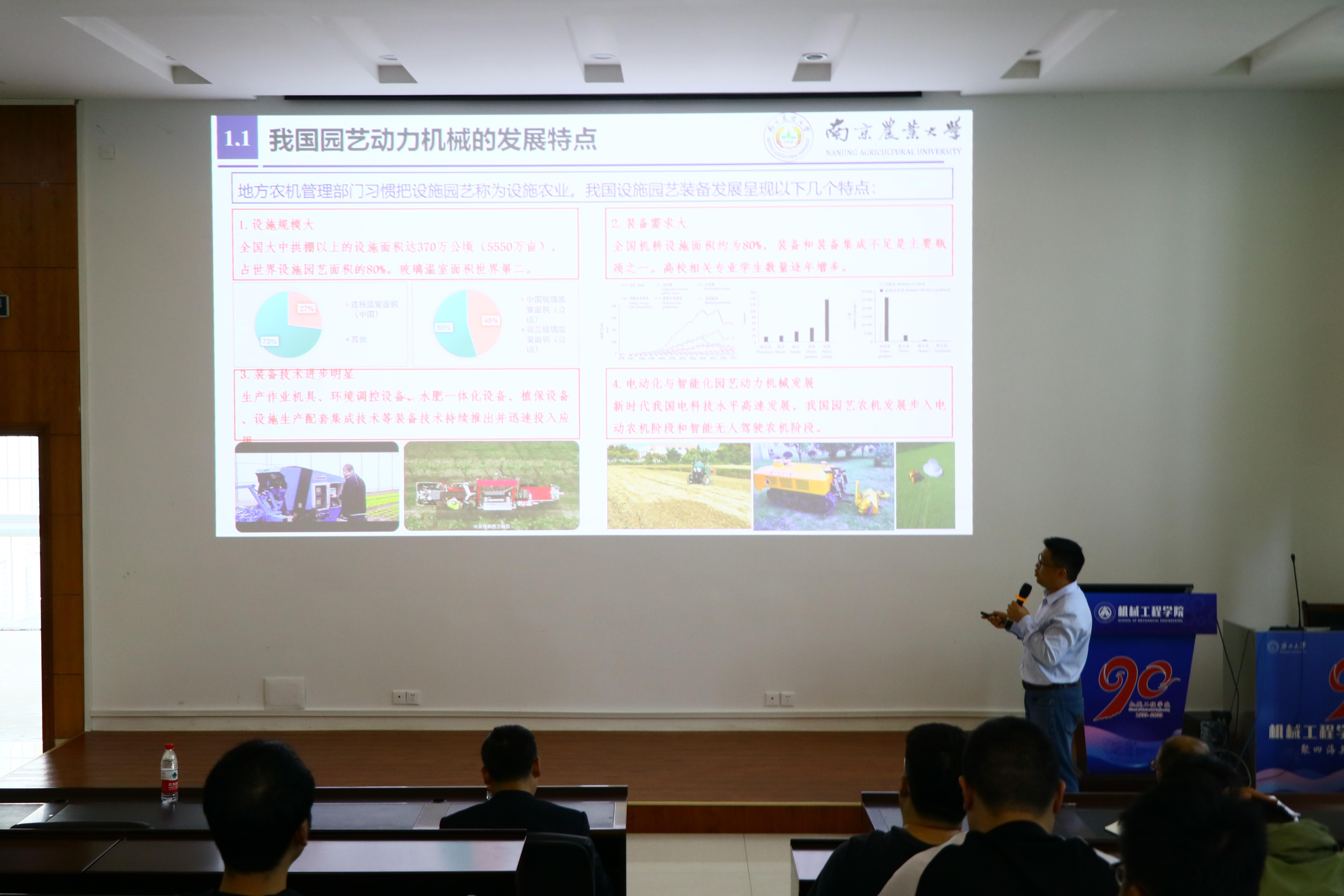 肖教授在報告中詳細介紹了國內(nèi)外電動智能園藝動力機械的研究現(xiàn)狀與發(fā)展趨勢,分享了其團隊近年在電動農(nóng)機方面的豐富研究成果,讓師生們感受到電動智能技術(shù)與農(nóng)機的關(guān)聯(lián)與魅力,受到在場師生的廣泛好評。報告結(jié)束后,肖教授還與在場同學(xué)進行了熱烈的交流與討論,講座在熱烈活躍的氛圍中圓滿結(jié)束。