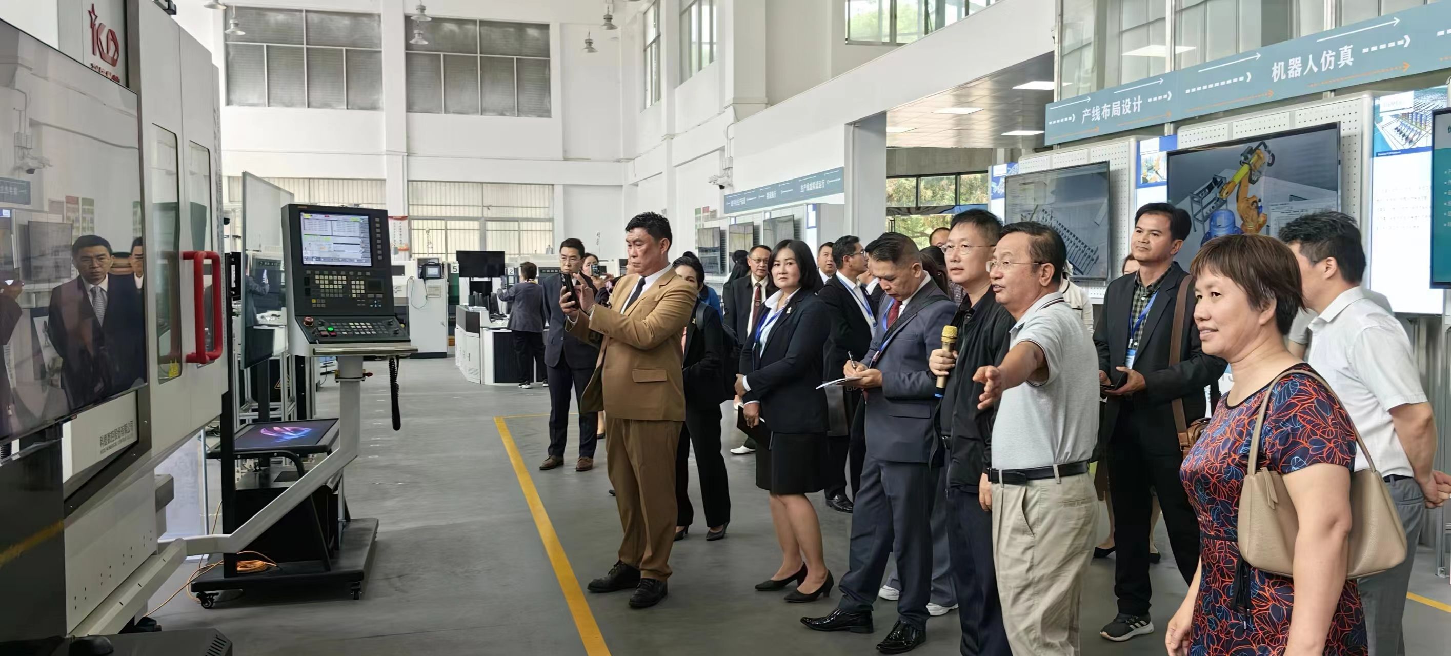 4月25日,由泰國教育部高級(jí)顧問、泰國雙邊職業(yè)教育委員會(huì)主任、泰國東盟企業(yè)家協(xié)會(huì)會(huì)長和常務(wù)副會(huì)長,以及泰國素攀職業(yè)技術(shù)學(xué)院、色娜職業(yè)學(xué)院、翁喃巖職業(yè)技術(shù)學(xué)院、甘碧亨農(nóng)業(yè)技術(shù)學(xué)院、四色菊朱拉瑪尼職業(yè)學(xué)院、邦盛職業(yè)技術(shù)學(xué)院、塔甘皮坡職業(yè)技術(shù)學(xué)院、佛統(tǒng)測量技術(shù)學(xué)校等8所職業(yè)院校領(lǐng)導(dǎo)一行14人組成的訪團(tuán),到我院進(jìn)行參觀考察。