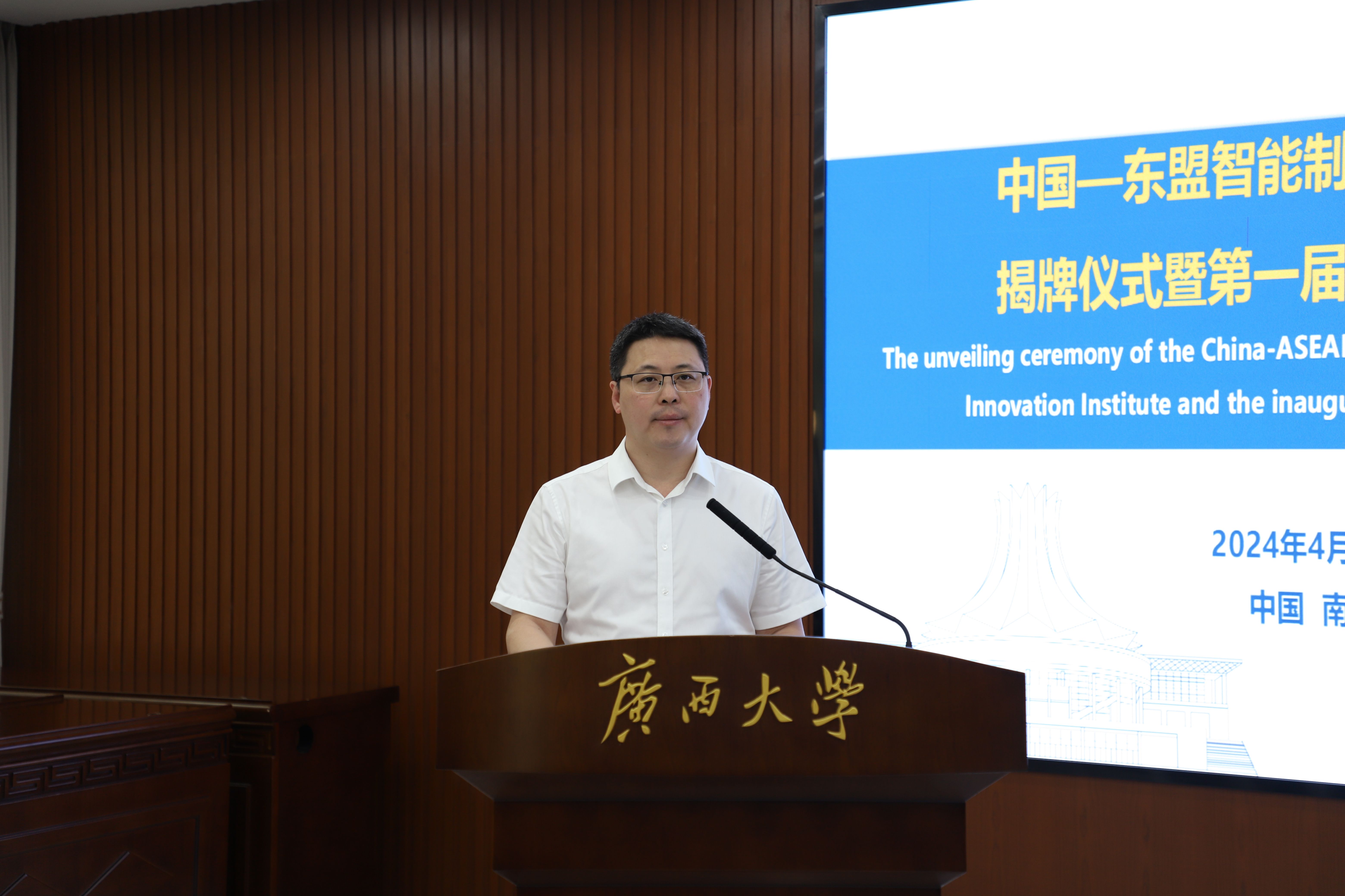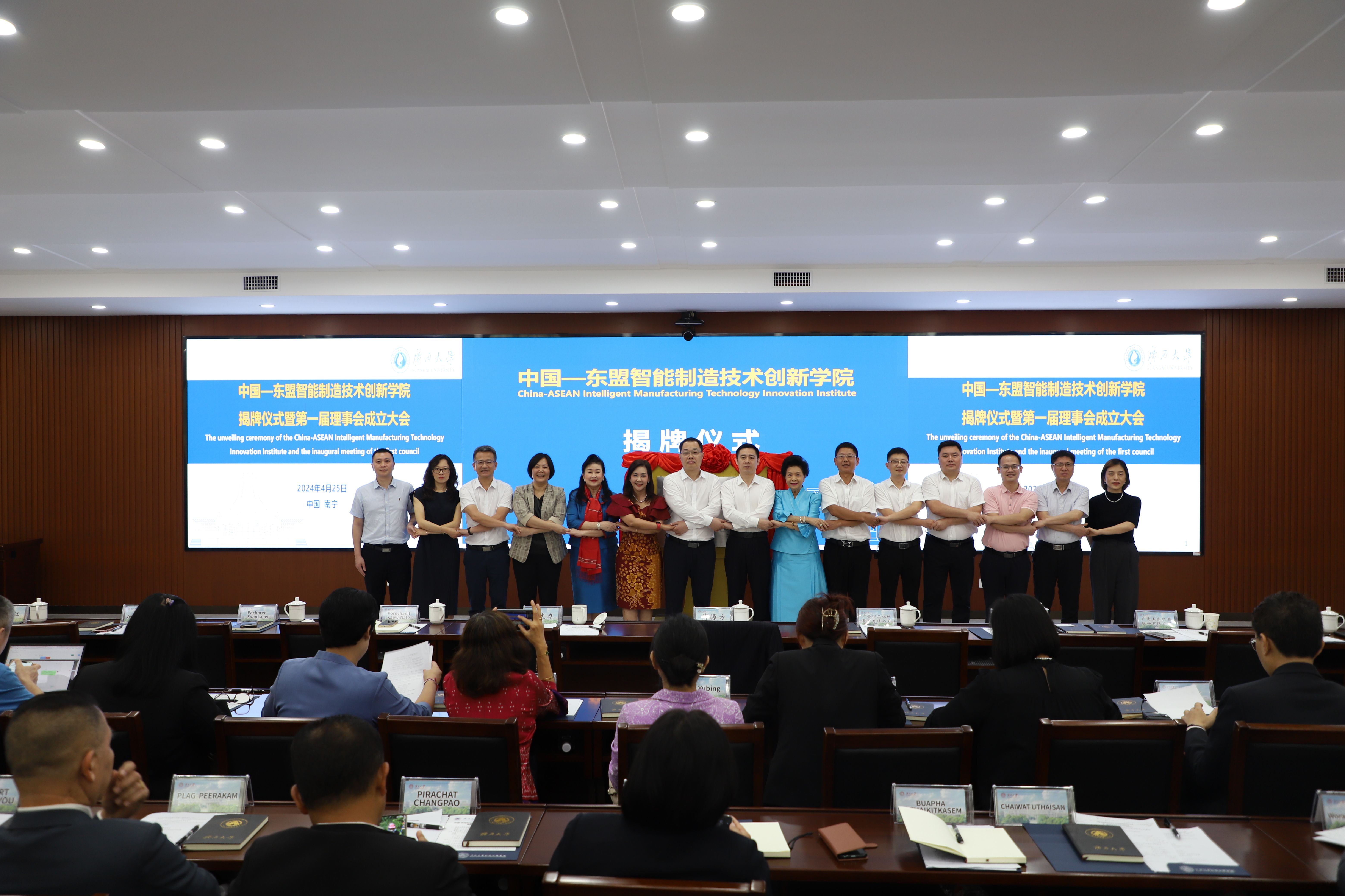 4月25日上午,由我院牽頭的中國-東盟智能制造技術(shù)創(chuàng)新學(xué)院在我校揭牌成立。校黨委常委、副書記馬獻力、自治區(qū)教育廳高教處處長兼學(xué)位管理與研究生教育處處長(自治區(qū)學(xué)位辦主任)傅源方共同為技術(shù)創(chuàng)新學(xué)院揭牌。