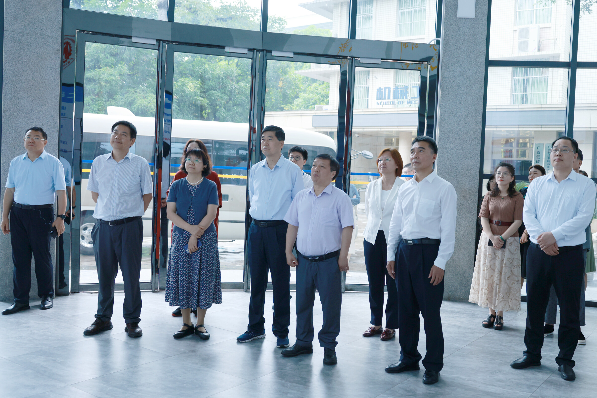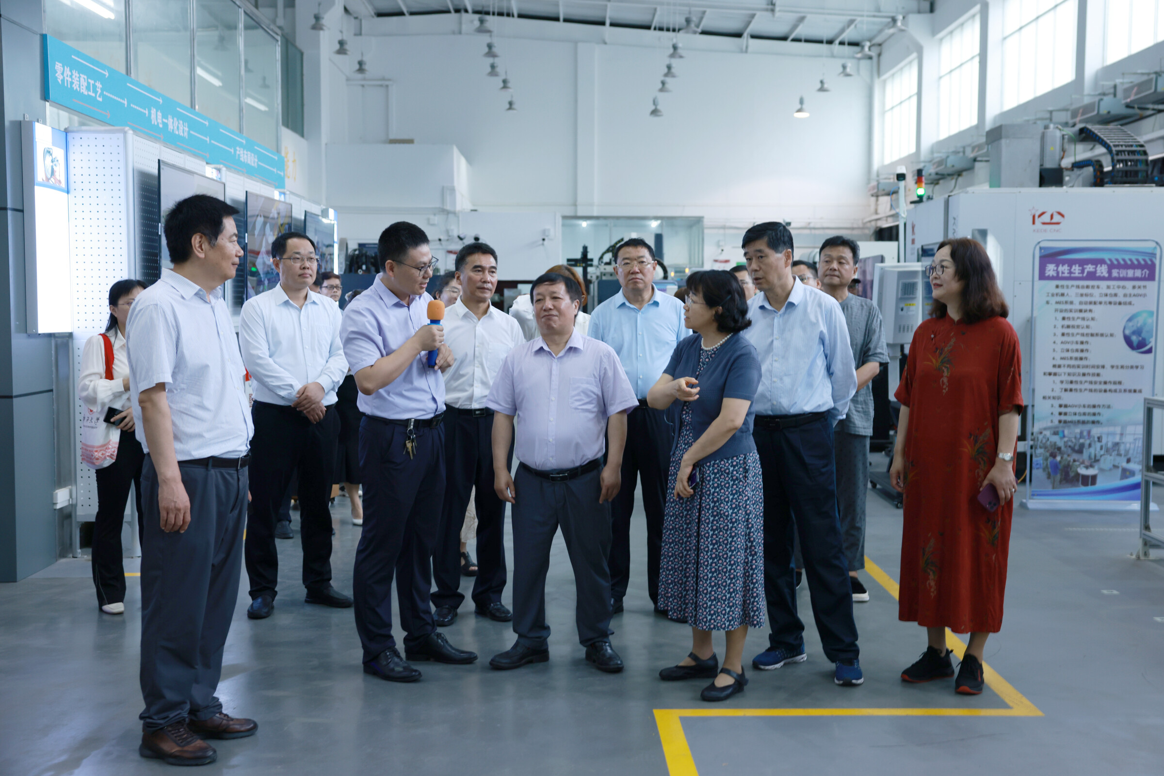 全國政協(xié)委員、中華職業(yè)教育社副理事長蘇華,全國政協(xié)委員、廣東技術(shù)師范大學(xué)副校長許玲,全國政協(xié)委員、浙江財經(jīng)大學(xué)副校長鄭亞莉,吉林城市職業(yè)技術(shù)學(xué)院院長孫進,民建中央調(diào)研部二級巡視員李沛熹等參加調(diào)研。廣西大學(xué)黨委副書記馬獻力,廣西大學(xué)黨委常委、副校長夏國恩陪同調(diào)研。我院黨委書記盧嬋江、副院長(主持工作)賀德強介紹中國—東盟智能制造技術(shù)創(chuàng)新學(xué)院建設(shè)規(guī)劃和技術(shù)創(chuàng)新學(xué)院智能制造車間情況。