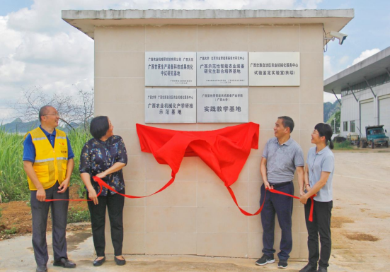 6月23日上午,廣西大學(xué)與廣西壯族自治區(qū)農(nóng)業(yè)機械化服務(wù)中心(以下簡稱“自治區(qū)農(nóng)機中心”)在廣西亞熱帶農(nóng)科新城廣西甘蔗生產(chǎn)機械化試驗示范園區(qū)舉辦“廣西農(nóng)業(yè)機械化產(chǎn)學(xué)研推示范基地”等合作平臺揭牌儀式。自治區(qū)農(nóng)機中心黨委副書記范軍燦、廣西農(nóng)業(yè)機械研究院有限公司總工程師龐承妮、廣西大學(xué)農(nóng)牧產(chǎn)業(yè)發(fā)展研究院院長司紅彬、廣西大學(xué)機械工程學(xué)院黨委書記盧嬋江共同揭牌。共建單位代表、智能農(nóng)機研究團隊專家、智能農(nóng)機研究生代表等10多人現(xiàn)場共同見證。同時揭牌的還有“廣西甘蔗生產(chǎn)裝備科技成果轉(zhuǎn)化中試基地”、“廣西示范性智能農(nóng)業(yè)裝備研究生聯(lián)合培養(yǎng)基地”、“廣西亞熱帶智能農(nóng)機裝備產(chǎn)業(yè)學(xué)院實踐教學(xué)基地”等三個平臺。