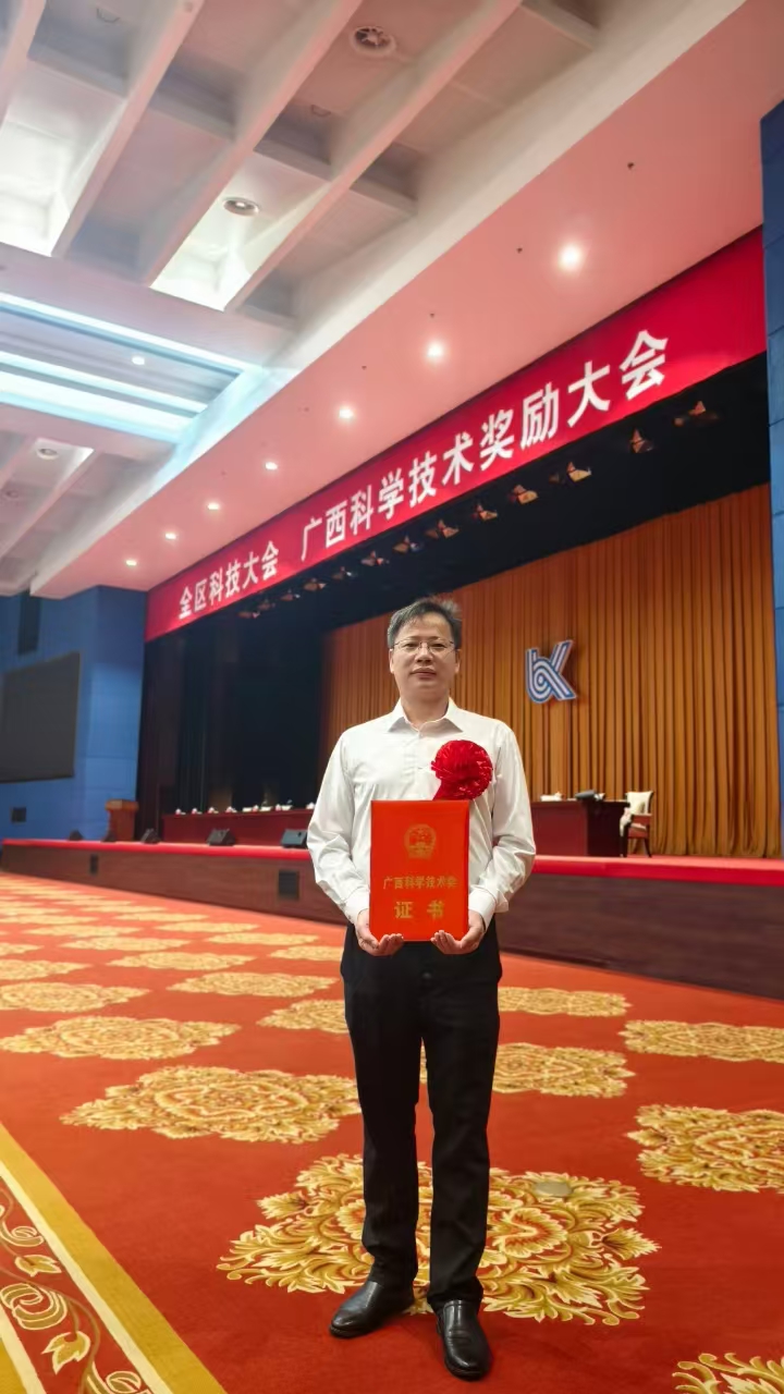 近日,全區(qū)科技大會、廣西科學技術獎勵大會在南寧召開,大會公布2023年廣西科學技術獎獲獎榜單,并為獲獎者頒獎。我院龍雨榮獲2023年度廣西科學技術發(fā)明獎一等獎,潘明章榮獲廣西科學技術進步獎一等獎,雙雙實現(xiàn)我院在該獎項上的歷史突破。此外,作為獲獎成員之一,我院的黃偉、陳勇榮獲廣西科技進步獎一等獎2項,官維榮獲廣西科技進步獎二等獎1項。會后,龍雨教授和潘明章教授還作為獲獎代表出席了自治區(qū)領導與院士專家座談會。
