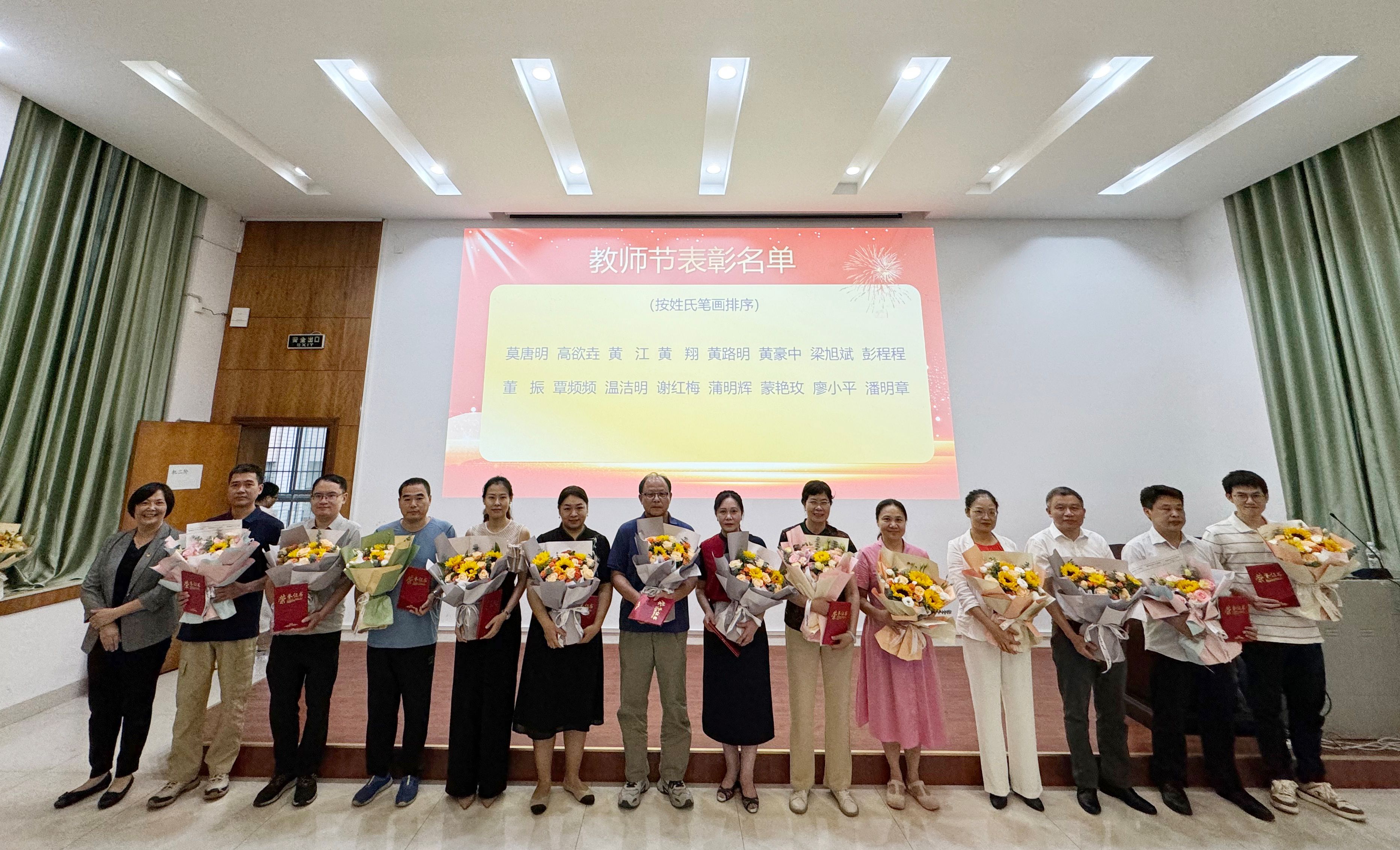 盧嬋江書(shū)記代表學(xué)院向全院教職工致以節(jié)日的問(wèn)候,向受到表彰的教職工表示祝賀。今年我院蒙艷玫教授獲評(píng)全國(guó)優(yōu)秀教師,賀德強(qiáng)教授獲評(píng)自治區(qū)模范教師,是學(xué)院多年來(lái)注重師資隊(duì)伍建設(shè)的成果,學(xué)院致力于培養(yǎng)造就一支師德高尚、業(yè)務(wù)精湛、結(jié)構(gòu)合理的高素質(zhì)教師隊(duì)伍。她指出,學(xué)院正處在高質(zhì)量發(fā)展向上突圍的關(guān)鍵時(shí)期,希望廣大教職員工能夠凝心聚力,砥礪前行,開(kāi)啟學(xué)院高質(zhì)量發(fā)展的新征程。