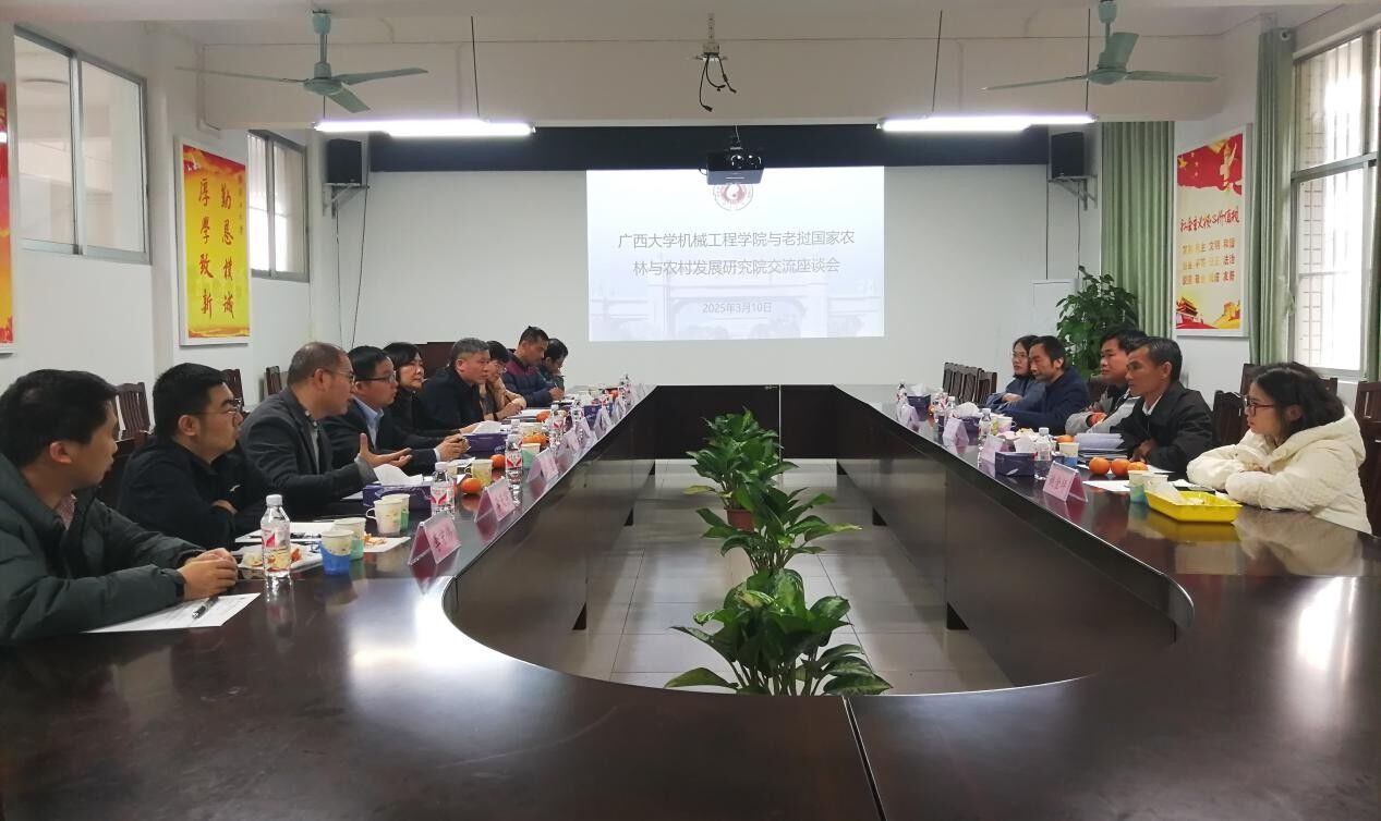老撾國(guó)家農(nóng)林研究院園藝研究所副所長(zhǎng)Bounpheng Sihomchanh先生、中國(guó)-老撾合作農(nóng)作物優(yōu)良品種試驗(yàn)站副站長(zhǎng)兼老撾國(guó)家農(nóng)林與農(nóng)村發(fā)展研究院水果與蔬菜研究中心副處長(zhǎng)Bounsavath Phongdara先生,南寧國(guó)際商會(huì)副會(huì)長(zhǎng)冼宜藝,中國(guó)─馬來(lái)西亞藍(lán)德環(huán)境科技集團(tuán)股份有限公司副總經(jīng)理馮石平等一行5人,與我院黨委書記盧嬋江、副院長(zhǎng)黃豪中、莫帥,農(nóng)機(jī)專家團(tuán)隊(duì)蒙艷玫、楊望教授等在會(huì)上交流,深化中國(guó)與老撾在農(nóng)林機(jī)械領(lǐng)域的交流與合作,共同探索適應(yīng)老撾農(nóng)業(yè)發(fā)展需求的農(nóng)機(jī)技術(shù)與推廣路徑。