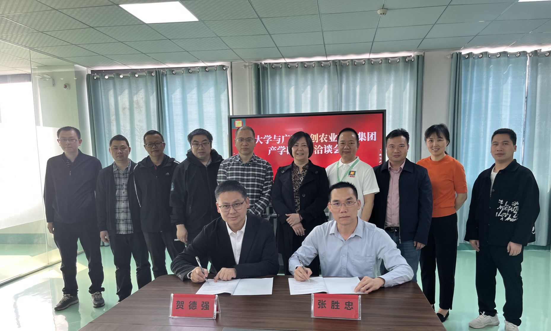 最后,賀德強(qiáng)院長代表西大和張勝忠董事長簽署“廣西大學(xué)-廣西科創(chuàng)農(nóng)業(yè)科技集團(tuán)產(chǎn)學(xué)研合作基地”共建協(xié)議,并現(xiàn)場舉行揭牌儀式。