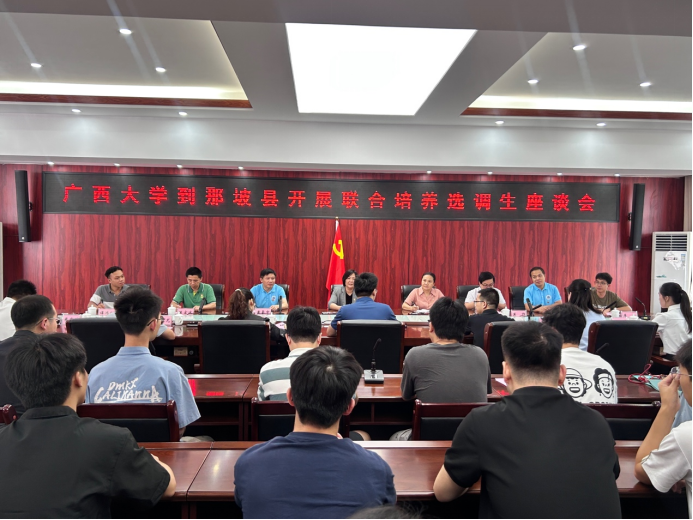 為貫徹落實學(xué)校黨委關(guān)于選調(diào)生工作的決策部署,推動我校選調(diào)生“君武青苗”行動工作走深走實,7月22日,學(xué)院黨委書記盧嬋江帶隊赴那坡縣開展調(diào)研,深入了解選調(diào)生在基層的成長情況與工作成效。調(diào)研團成員包括學(xué)院黨委副書記黃路明,學(xué)院副院長黃豪中、莫帥、陳宏波,機自系主任鄧建新,團委書記李華,助理教授譚鴻創(chuàng),輔導(dǎo)員農(nóng)婷婷、宋丹婷、梁煒昊、曾祥喜,以及21名學(xué)生黨員代表。那坡縣委常委、組織部部長梁安忠,那坡縣婦女聯(lián)合會黨組書記、主席藍婧月,那坡縣委組織部副部長黃波,那坡縣黨員教育中心副主任黃家尤等接待了調(diào)研團,在那坡縣工作的廣西大學(xué)選調(diào)生代表也參加了交流座談會。