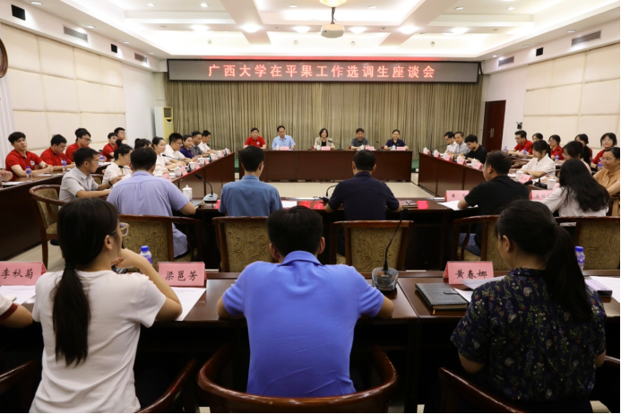 黃瑞華部長詳細(xì)介紹了在平果市工作的廣西大學(xué)選調(diào)生的基本情況,以及平果市產(chǎn)業(yè)發(fā)展的相關(guān)情況。他指出,平果市委組織部高度重視選調(diào)生的培養(yǎng)與選拔工作,通過強(qiáng)化制度保障,建立“傳幫帶”等長效機(jī)制,助力選調(diào)生在一線崗位經(jīng)風(fēng)雨、見世面、長才干。黃瑞華表示,廣西大學(xué)選調(diào)生工作扎實、擔(dān)當(dāng)有為,期望以選調(diào)生校地協(xié)同培養(yǎng)機(jī)制為契機(jī),發(fā)揮選調(diào)生專業(yè)優(yōu)勢與創(chuàng)新能力,推動選調(diào)生在平果融入平陸運(yùn)河經(jīng)濟(jì)帶、推進(jìn)新型工業(yè)化、推進(jìn)鄉(xiāng)村振興的建設(shè)發(fā)展中貢獻(xiàn)力量。
