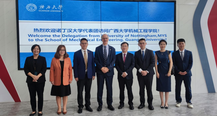 9月17日上午,英國諾丁漢大學副校長、馬來西亞分校校長兼首席執(zhí)行官大衛(wèi)·菲茨帕特里克校長(David FitzPatrick)率馬來西亞分校代表團一行五人來訪我院,廣西市長協(xié)會對外聯(lián)絡員宋益銘,校國際交流與合作處處長廖文丹、副處長郭宇路陪同參觀,一同考察工程訓練中心智慧車間、 廣西新能源車輛動力電池與綠色動力域重點實驗室以及廣西制造系統(tǒng)與先進制造技術重點實驗室。學院黨委書記盧嬋江、院長賀德強、君武學者龍雨、能源與動力工程系主任歐陽天成、工程訓練中心主任鄭炳年等接待來訪,秦智鵬副教授擔任翻譯。