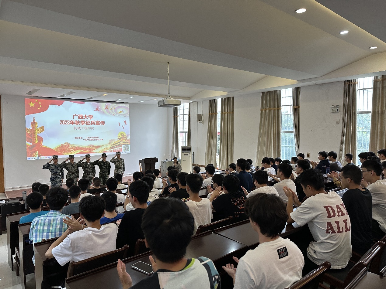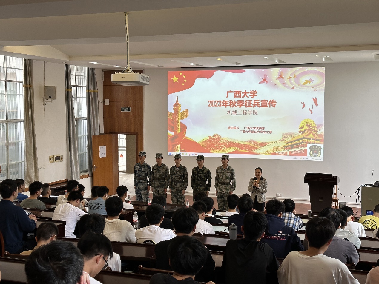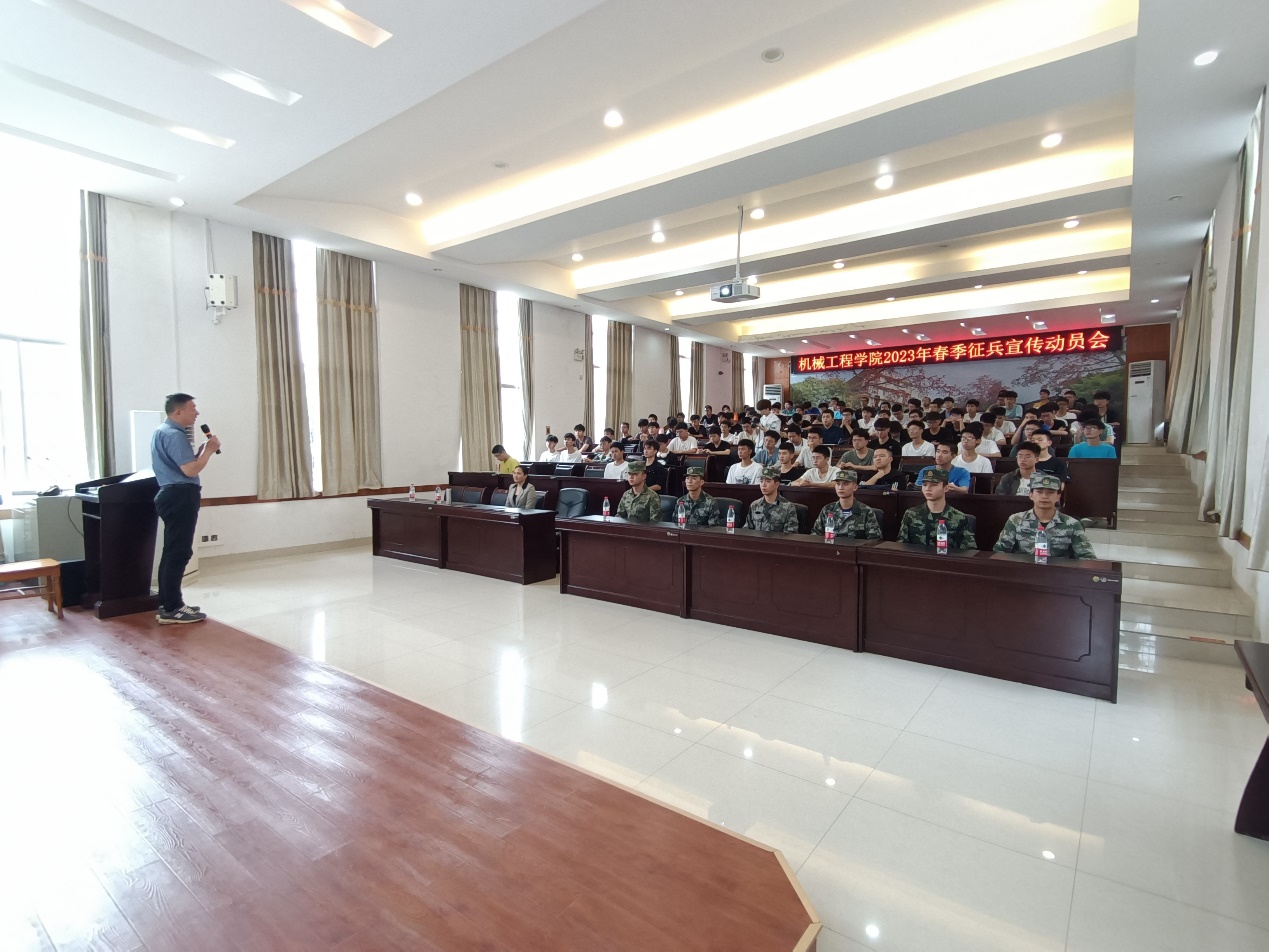 為進一步提高征兵政策宣講覆蓋面,推進我國國防和軍隊現(xiàn)代化建設(shè),激勵熱血青年學(xué)子應(yīng)征入伍,報效祖國。我院于5月9日在機械樓機二階舉辦征兵入伍宣講會,學(xué)院黨委副書記黃路明、學(xué)校武裝部陳榕平、輔導(dǎo)員何云信、學(xué)校退伍大學(xué)生代表及我院各班級代表參加本次宣傳會。