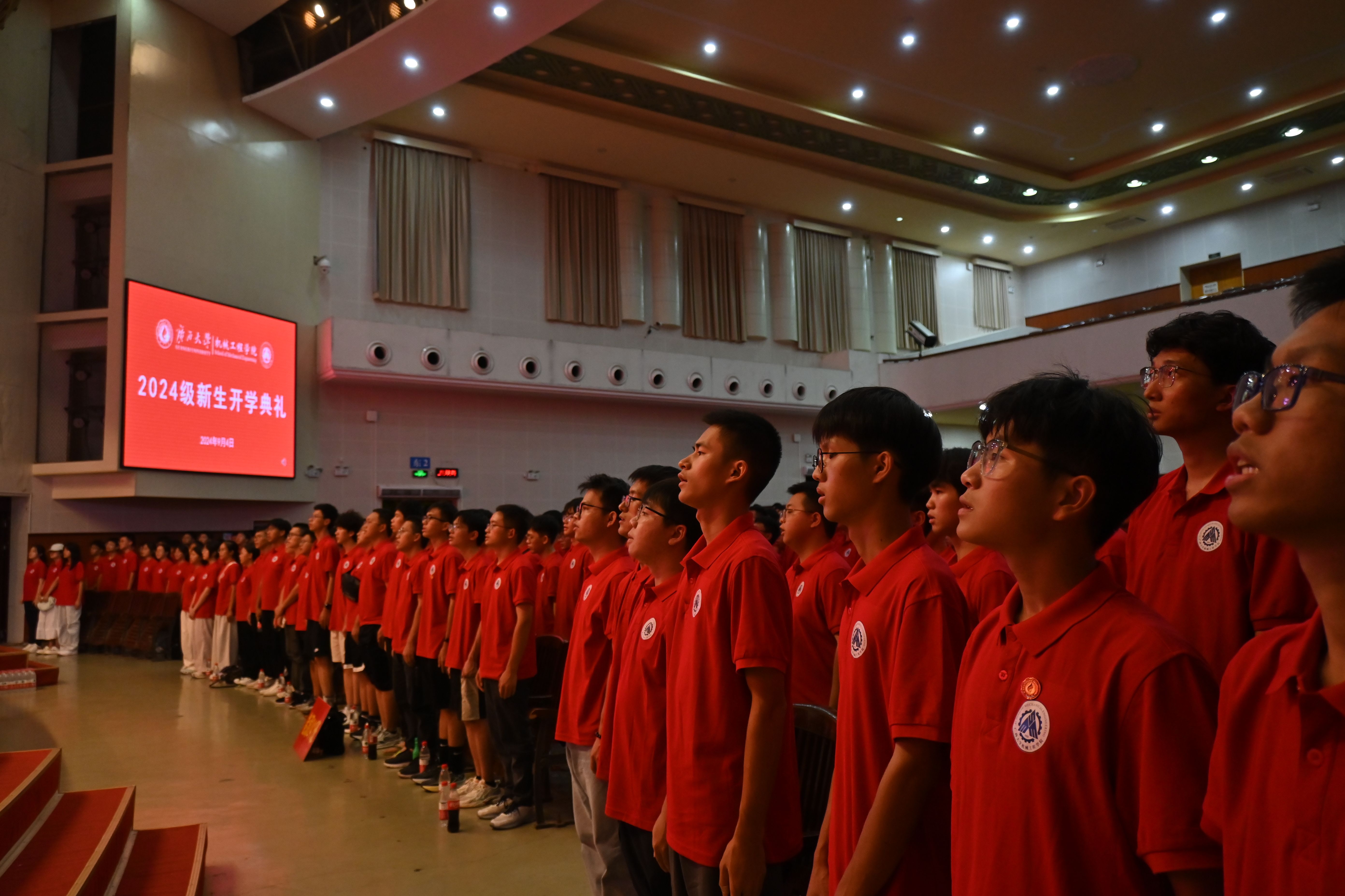 2024年9月4日晚,我院2024級新生開學(xué)典禮在學(xué)校大禮堂隆重舉行。學(xué)院領(lǐng)導(dǎo)、各系教師代表、輔導(dǎo)員及新生班主任與身著紅色院服的2024級全體新生們齊聚一堂,共同參與本次開學(xué)典禮。典禮由學(xué)院黨委副書記、紀(jì)委書記黃路明主持。