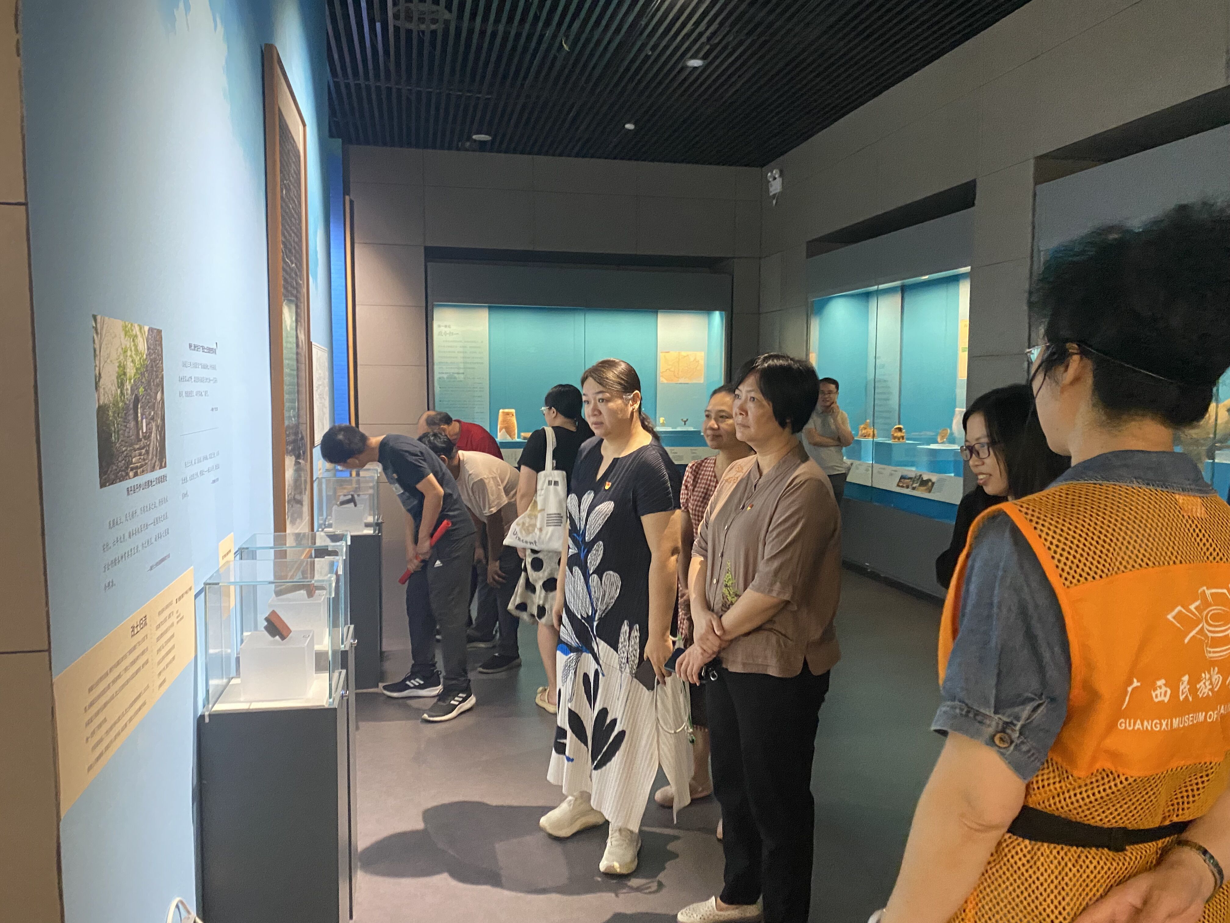 廣西民族博物館的鑄牢中華民族共同體意識歷史文化展包括“共辟遼闊疆域”、“共書悠久歷史”、“共創(chuàng)燦爛文化”、“共育偉大民族精神”四大部分內(nèi)容。通過參觀館內(nèi)珍貴的文物、文獻(xiàn)資料及歷史照片,大家深入了解到了廣西源遠(yuǎn)流長的各民族團(tuán)結(jié)的歷史,以及創(chuàng)造的彌足珍貴的文化財(cái)富,領(lǐng)略了各民族適應(yīng)自然、開放包容的生產(chǎn)生活智慧,既有物質(zhì)形態(tài)的多元,更有精神內(nèi)涵的一體。
